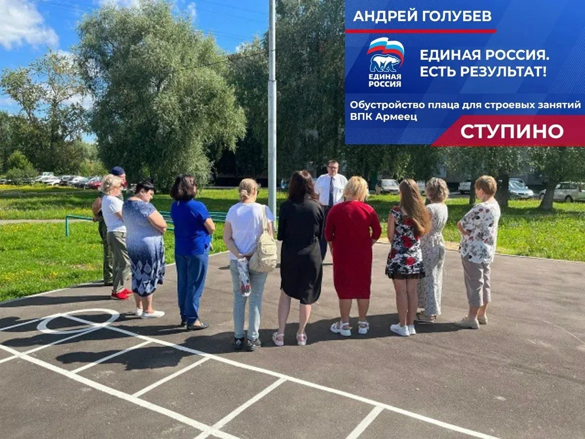 Отчитался по наказам жителей, касающимся укрепления базы учреждений образования, культуры и спорта. В том числе выполнен ещё один наказ, полученный мною во время избирательной кампании 2021 года. Коллектив военно-патриотического клуба «Армеец» попросил помочь построить для воспитанников клуба — юнармейцев Ступино — плац для строевых занятий.