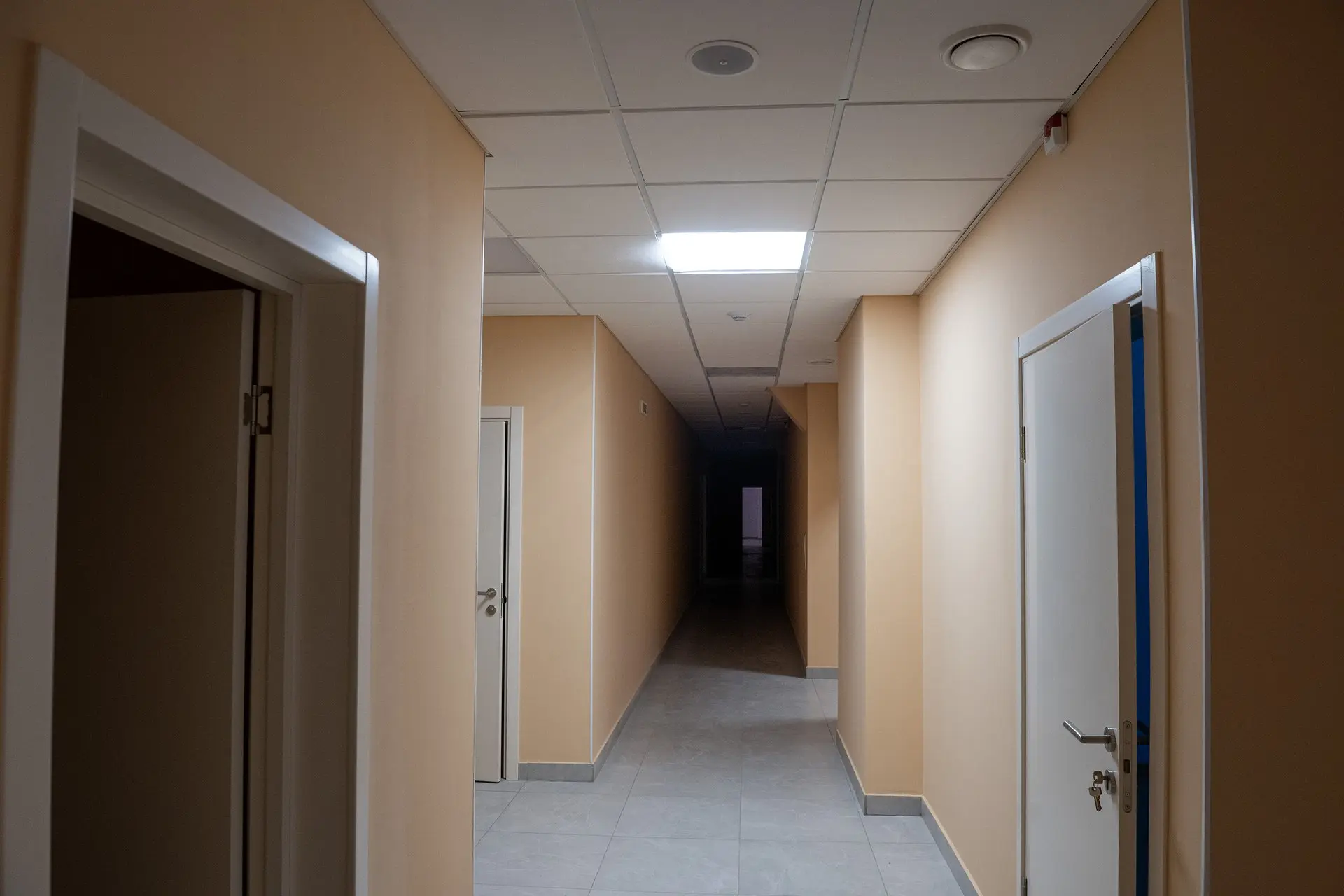 Высокие гости посмотрели, как идут работы. Представитель подрядной организации доложил, что все помещения центра уже готовы, сейчас идут работы по монтажу слаботочной системы, завершается отделка входной группы.