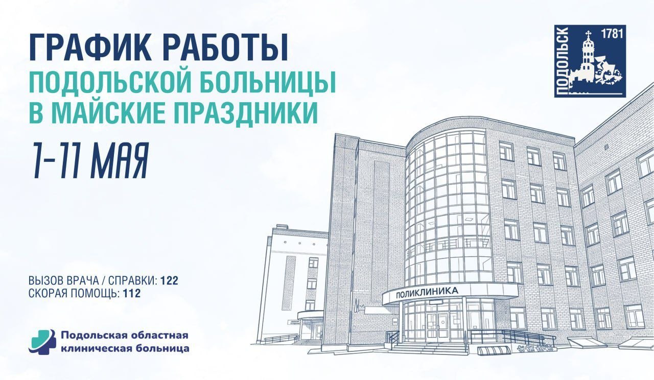 В Подольской больнице рассказали о графике работы отделений и подразделений в майские праздники