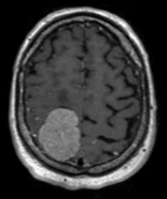 При МРТ-обследовании было выявлено крупное, около 5 см, внемозговое новообразование в лобной и теменной областях. Оно и являлось причиной приступов и слабости в руке и ноге. На момент поступления в стационар пациент не мог вставать и обслуживать себя.
