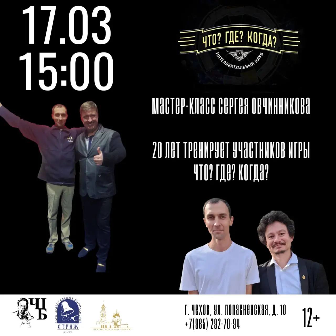 Приглашаем всех желающих на встречу с тренером интеллектуального клуба Сергеем Овчинниковым! В «Что? Где? Когда?» Сергей начал играть с детства, а в студенческие годы стал тренировать начинающих знатоков — сейчас его педагогический стаж превышает 20 лет.