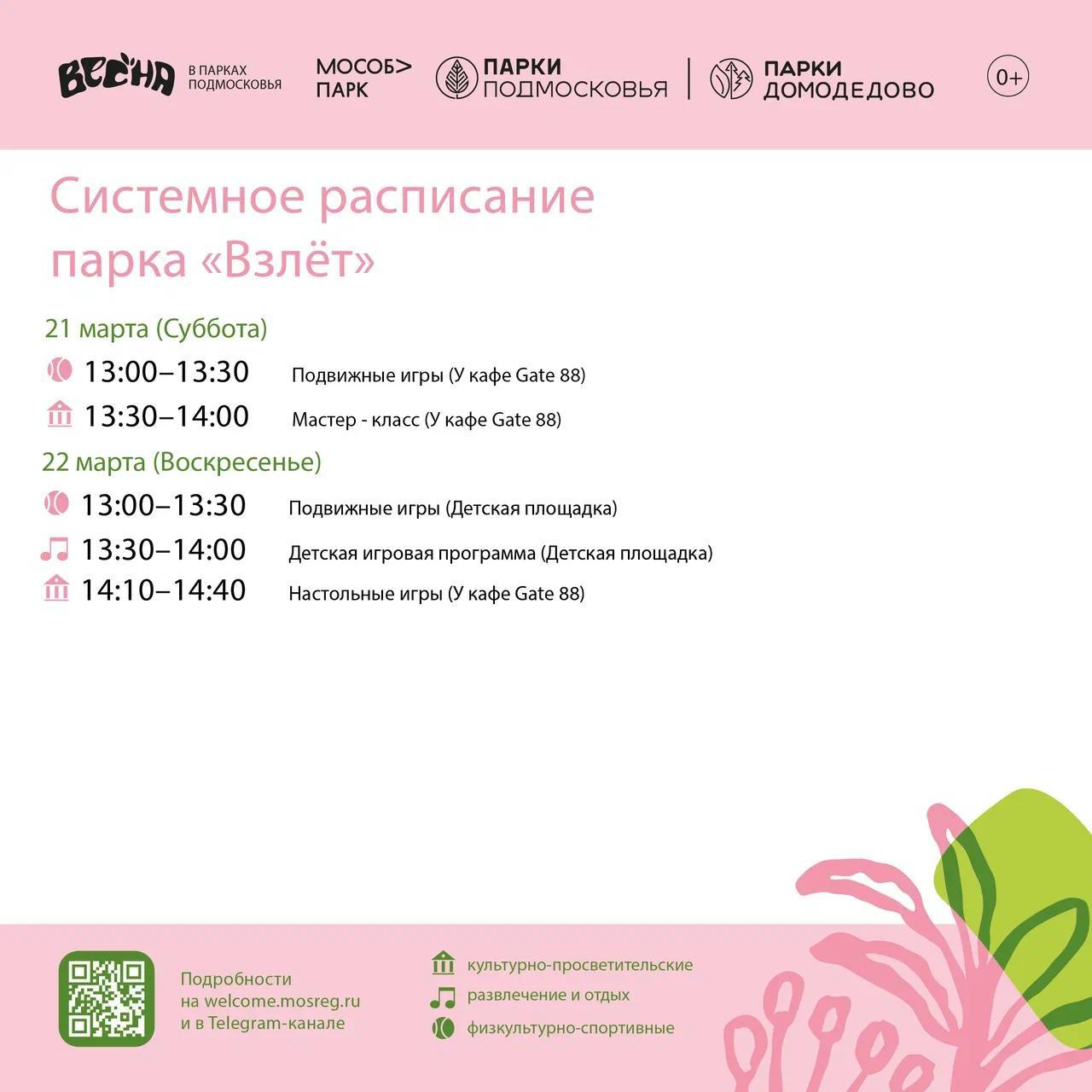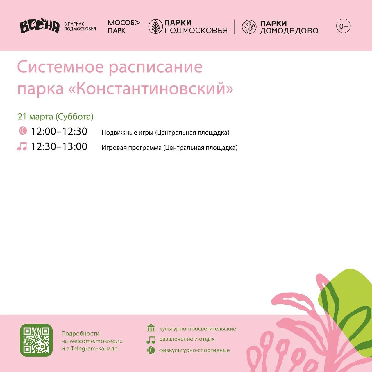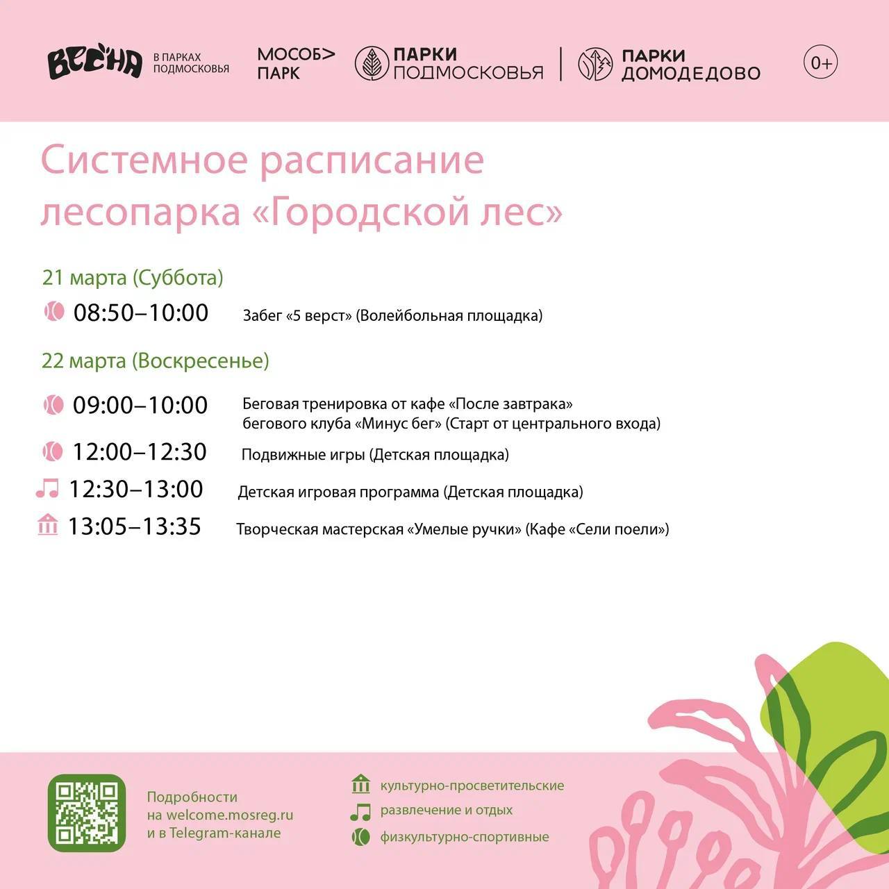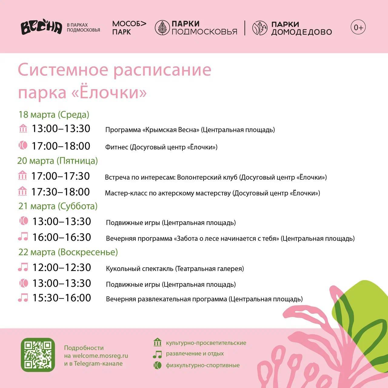 Солнышко светит, птички поют, а мы делимся с вами системным расписанием парков Домодедово