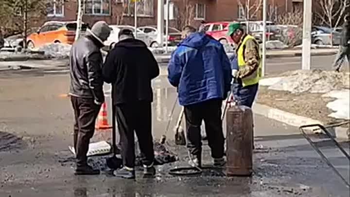 Можно вечно смотреть на три вещи: как горит огонь, течёт вода и как дорожные службы заделывают яму