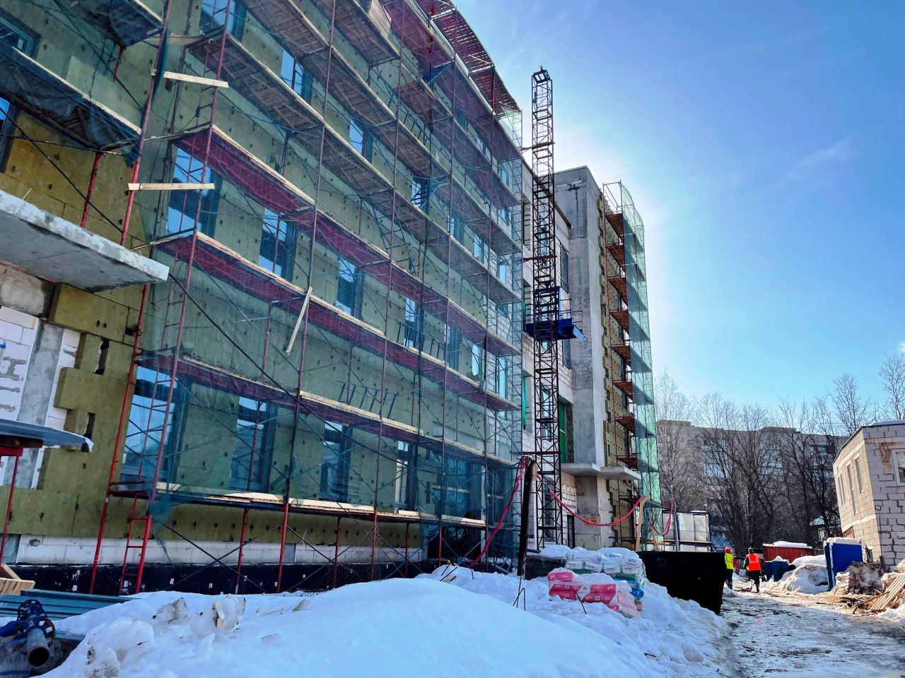 Побывал на стройплощадке детской поликлиники в Пушкино на проезде Розанова.
