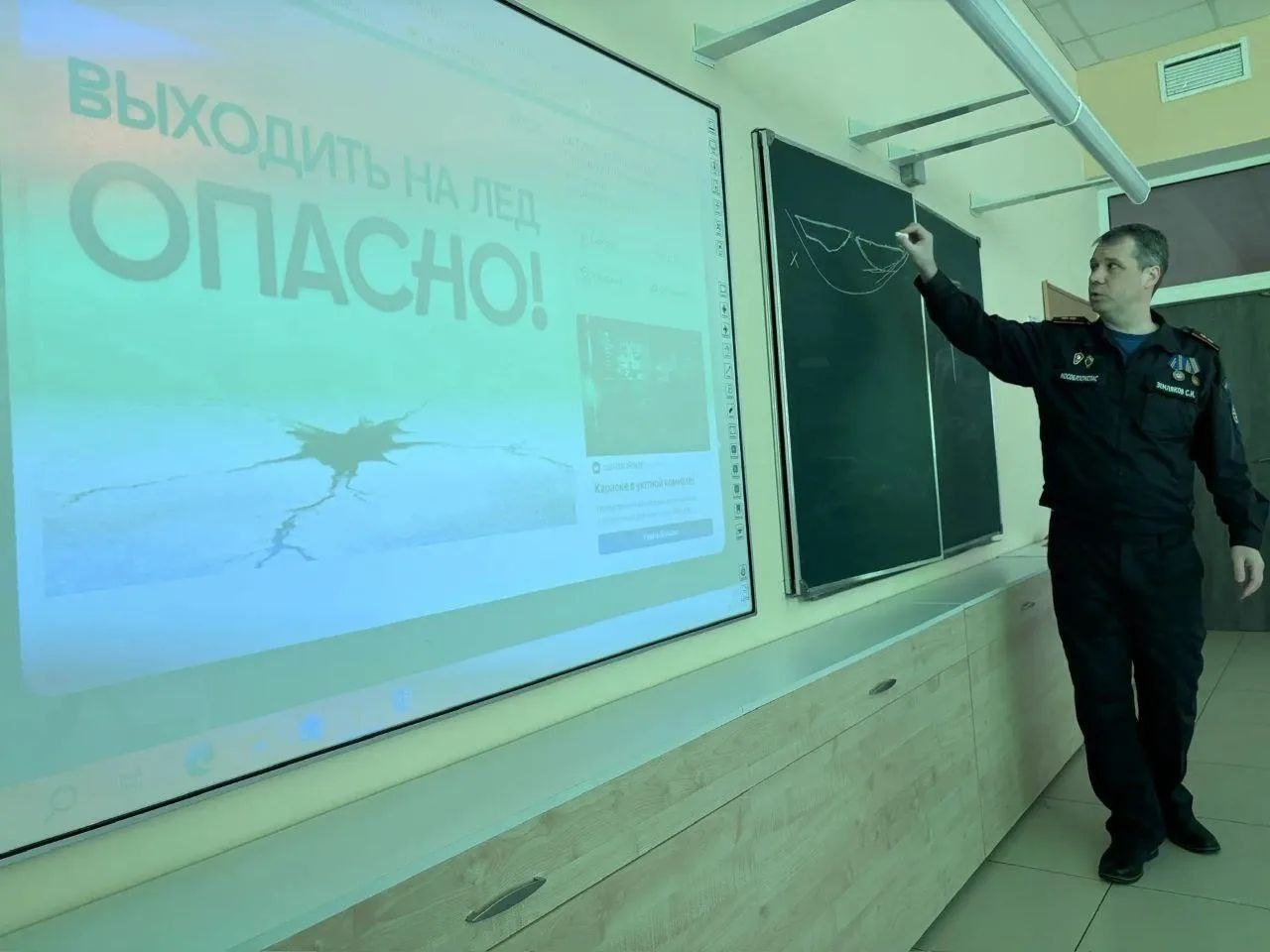 Осторожно, тонкий лёд! Спасатель провёл урок безопасности для школьников