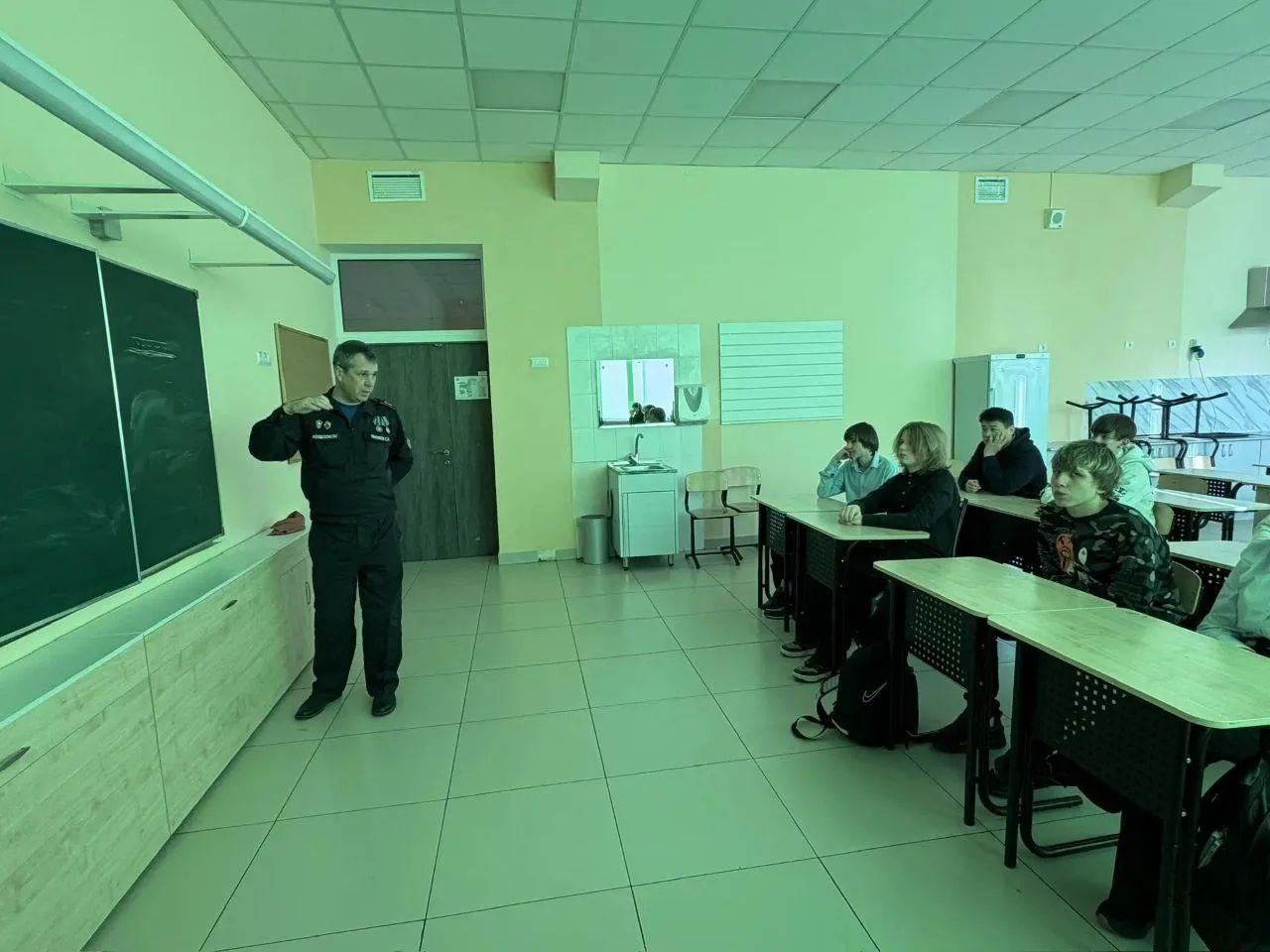 В понедельник, 16 марта, спасатель «Мособлпожспас» Сергей Земляков провёл урок безопасности для учеников 4 и 8 классов местной школы.