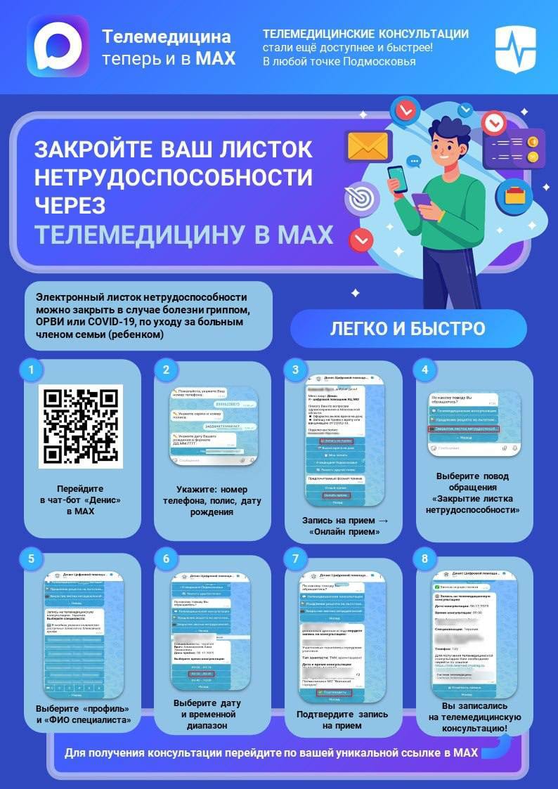 Один из самых удобных способов закрыть больничный — телемедицинская консультация с врачом через МАХ. Сервисом воспользовались почти 70 000 жителей Подмосковья.