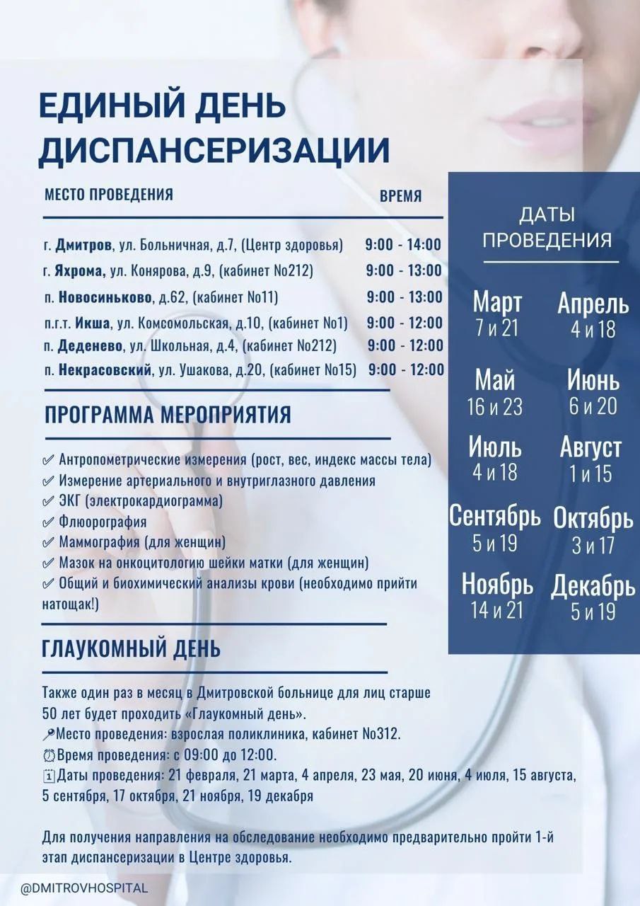 21 марта в Дмитровской больнице и её структурных подразделениях состоится Единый день диспансеризации