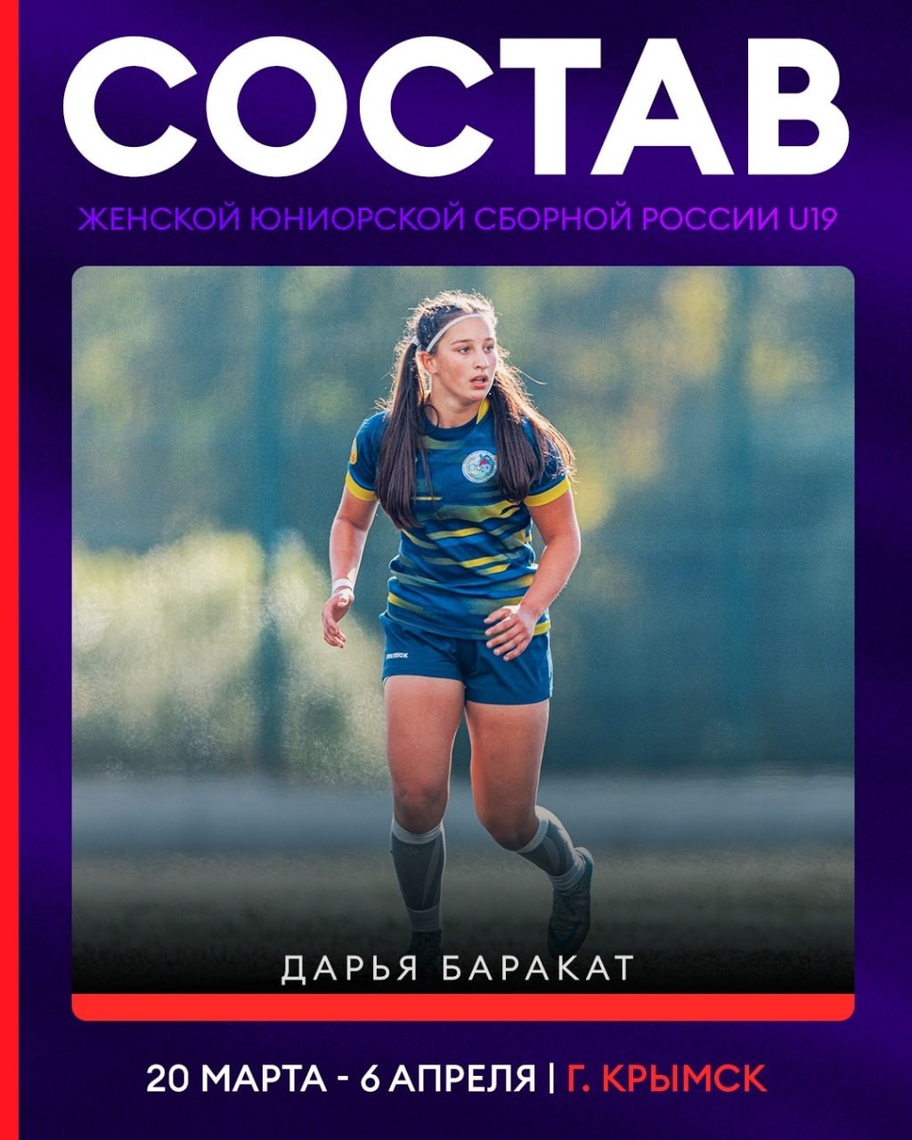 Всего 27 лучших регбисток (до 19 лет) отправятся в Крымск. Сбор пройдёт с 20 марта по 6 апреля.