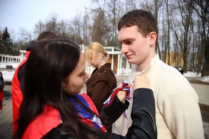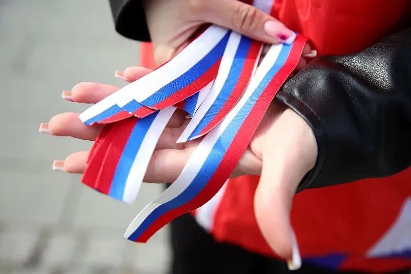 Кроме того, волонтеры и активисты вручали всем желающим ленточки в цветах государственного триколора. Ленточки стали символом сопричастности к большому празднику и уважения к общероссийским ценностям.