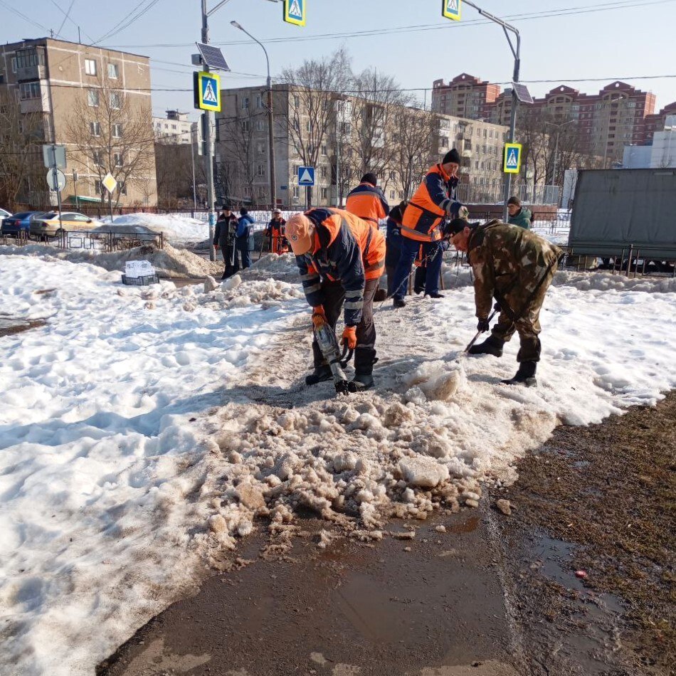 В городском округе продолжается активная уборка после зимы. Управляющие компании должны усилить работу по уборке оттаявшего мусора на придомовых территориях.