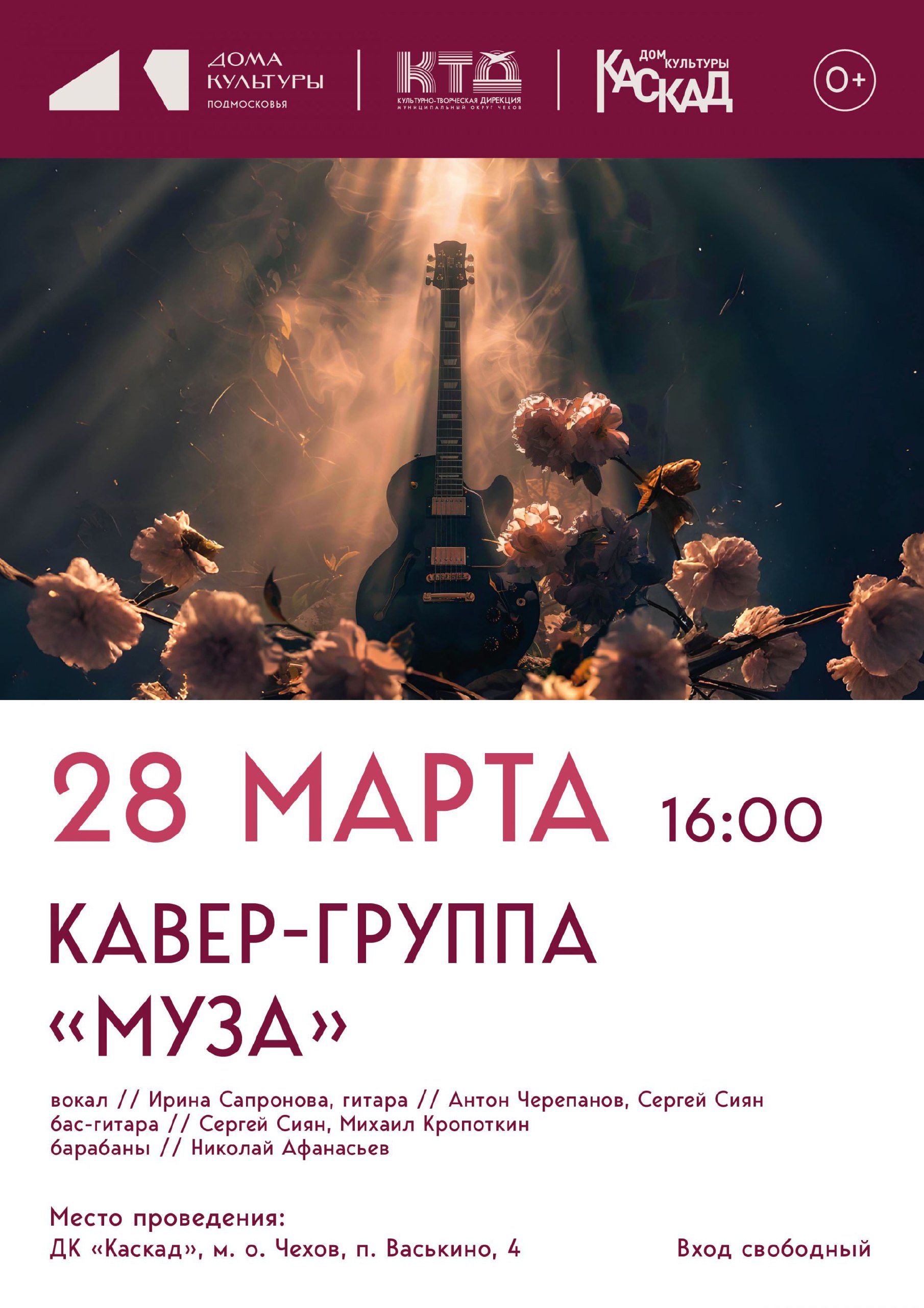 Дорогие друзья, спешим сообщить вам о концерте кавер-группы «МузА»! Эта удивительная команда исполнит для вас любимые хиты — такие знакомые мелодии зазвучат по-новому благодаря таланту наших музыкантов.