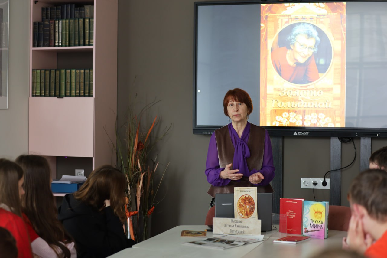 Благодаря сотрудничеству библиотеки с клубом православных журналистов «Стриж», прошёл вечер из цикла «Имена веры», посвящённый выдающимся женским именам в истории Православия и нашим современницам. Центральной фигурой мероприятия стала Наталия Гольдина — народный художник, чьё 106-летие отмечается в марте. Её удивительные работы в технике маркетри до сих пор украшают интерьеры предприятий, храмов и Домов культуры муниципального округа Чехов.