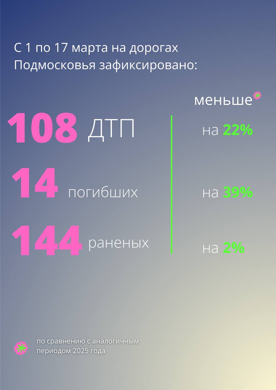 В этот период произошло на 30 ДТП меньше, также снизилась тяжесть последствий в них — это связано не только с изменением погодных условий, но и с работой на опережение: установкой элементов инфраструктуры.