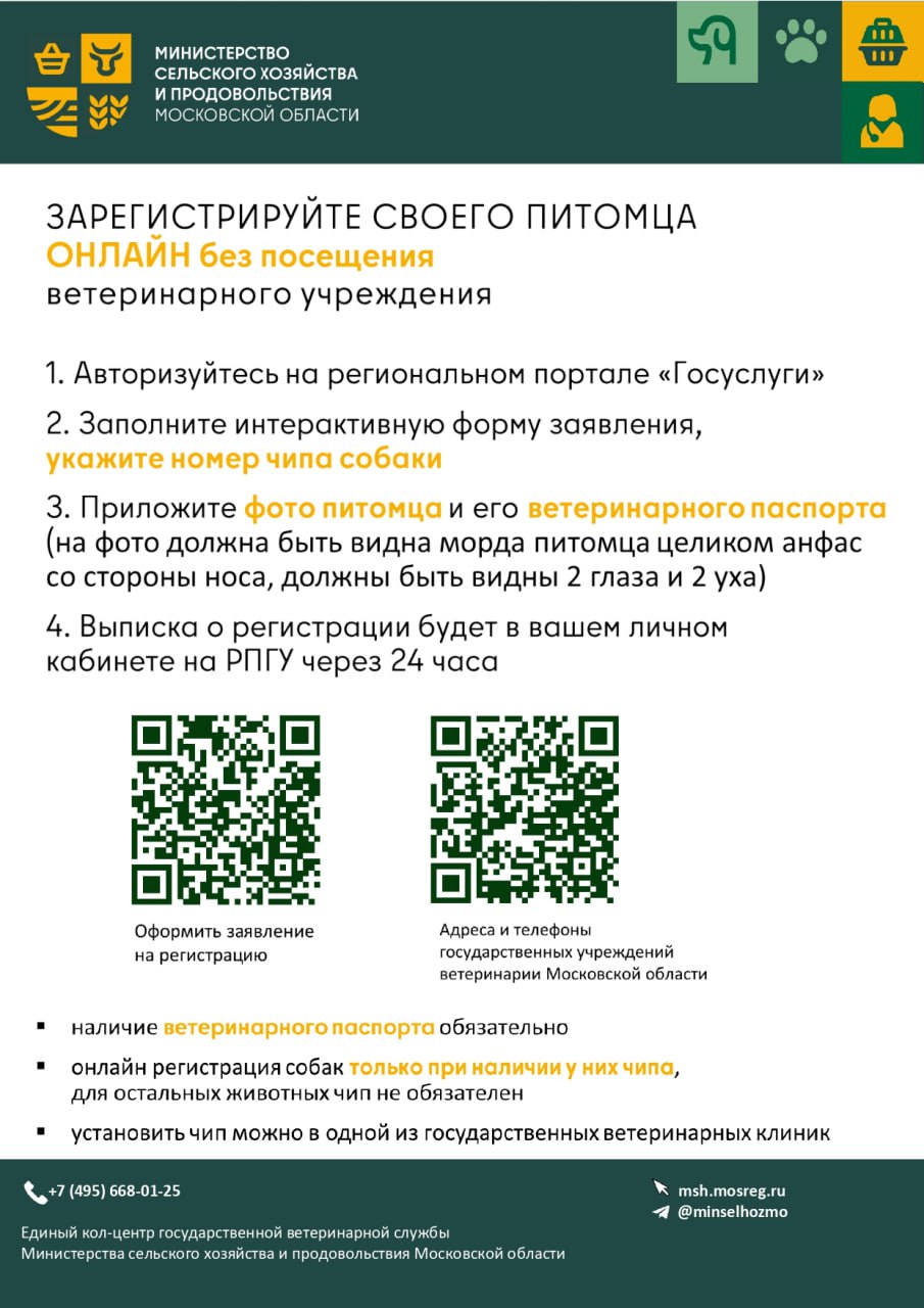 Порядок онлайн-регистрации питомца: