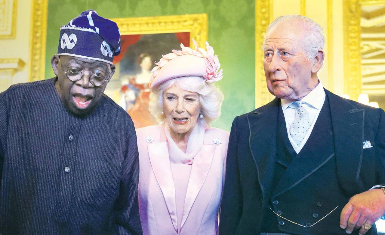 Лицо нигерийского президента, когда британская королевская чета вчера показала ему сокровища, награбленные английскими колониалистами на территории нынешней Нигерии и незаконно присвоенные предками этих венценосных вырожденцев. Похвастались, но возвращать награбленное не собираются.