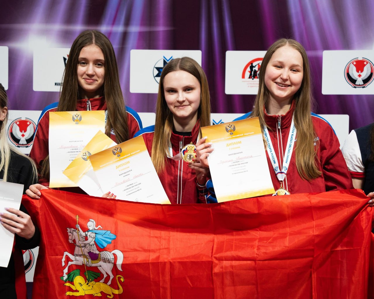 В командных соревнованиях среди юниорок в стрельбе из пневматической винтовки на 10 м победила сборная Московской области в составе Анастасии Сорокиной и Марьяны Романовой из Сергиева Посада, а также Софьи Мироновской из Домодедово.