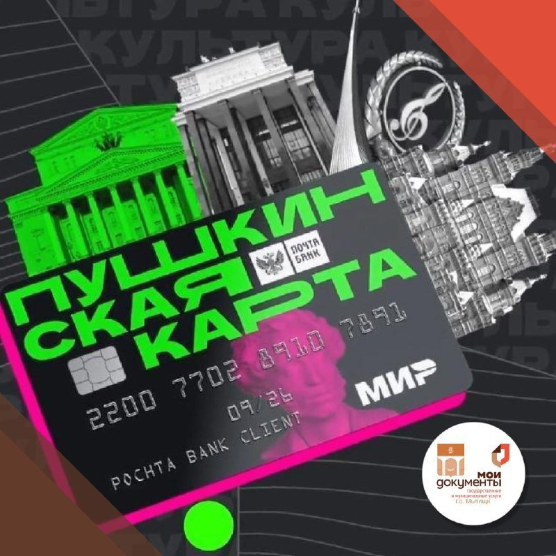 «Пушкинская карта» – это банковская карта с лимитом 5000 рублей, на который можно купить билеты в театры и музеи, на выставки и концерты. Завести карту можно с 14 лет, получив первый паспорт гражданина РФ.