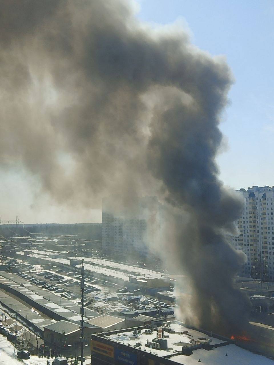 Огонь на строительном рынке в подмосковном поселке Андреевка распространяется стремительно
