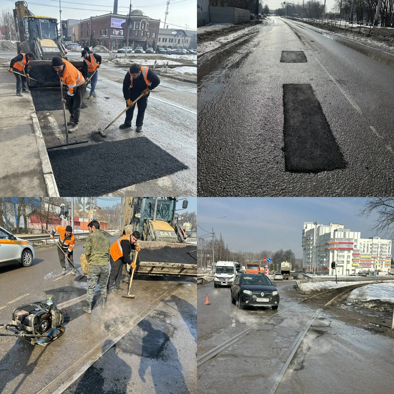 Продолжаем работы по ямочному ремонту. На фото — улицы Краснознаменская и Фабричная.