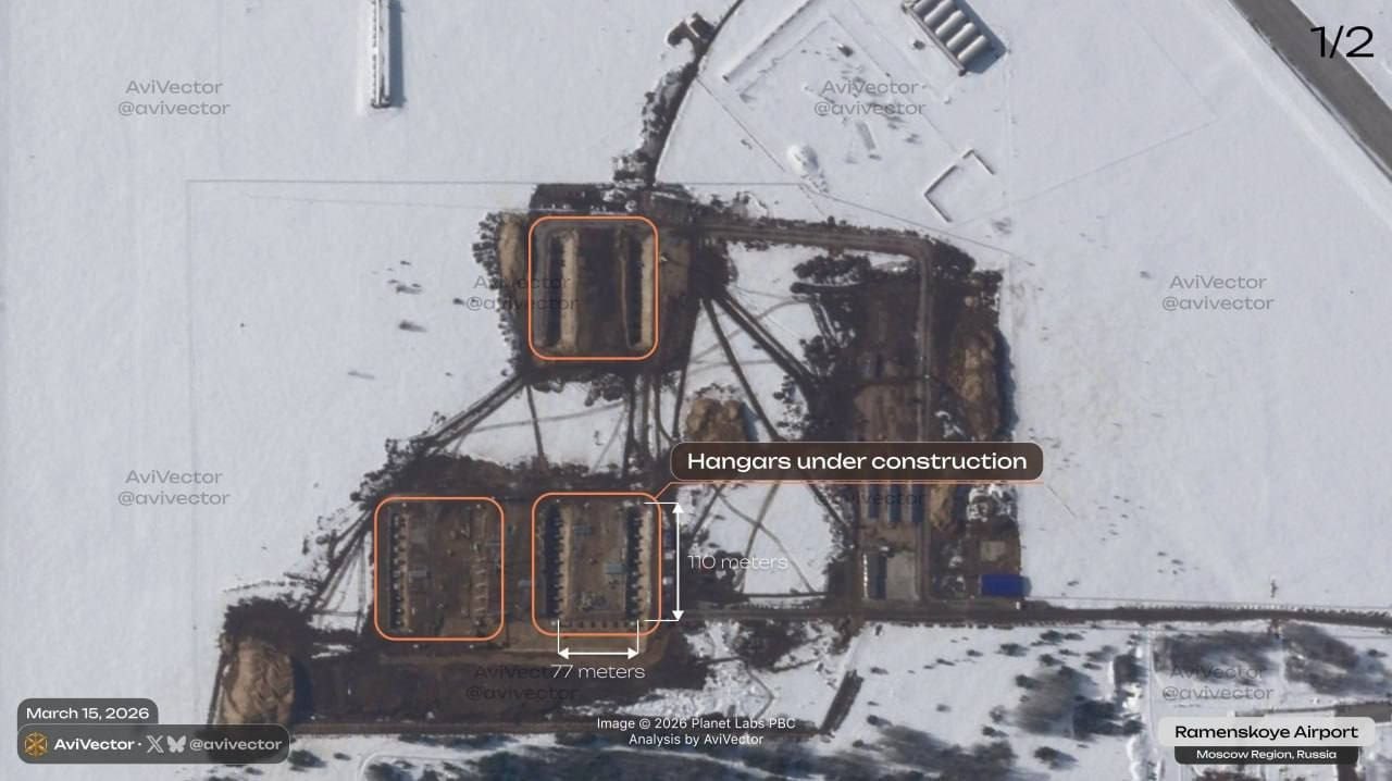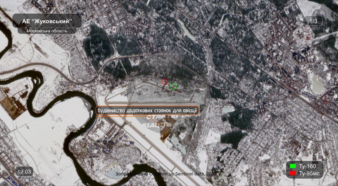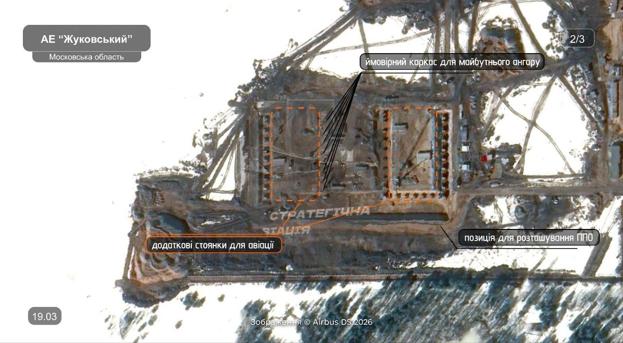 Спутниковые снимки показывают, что на аэродроме "Раменское" в г. Жуковский, где базируются Ту-95, Ту-22М3 и несколько Ту-160, идет активное строительство. Предполагается, что это могут быть ангары для стратегических бомбардировщиков. Аналогичное строительство замечено на "Энгельс-2".