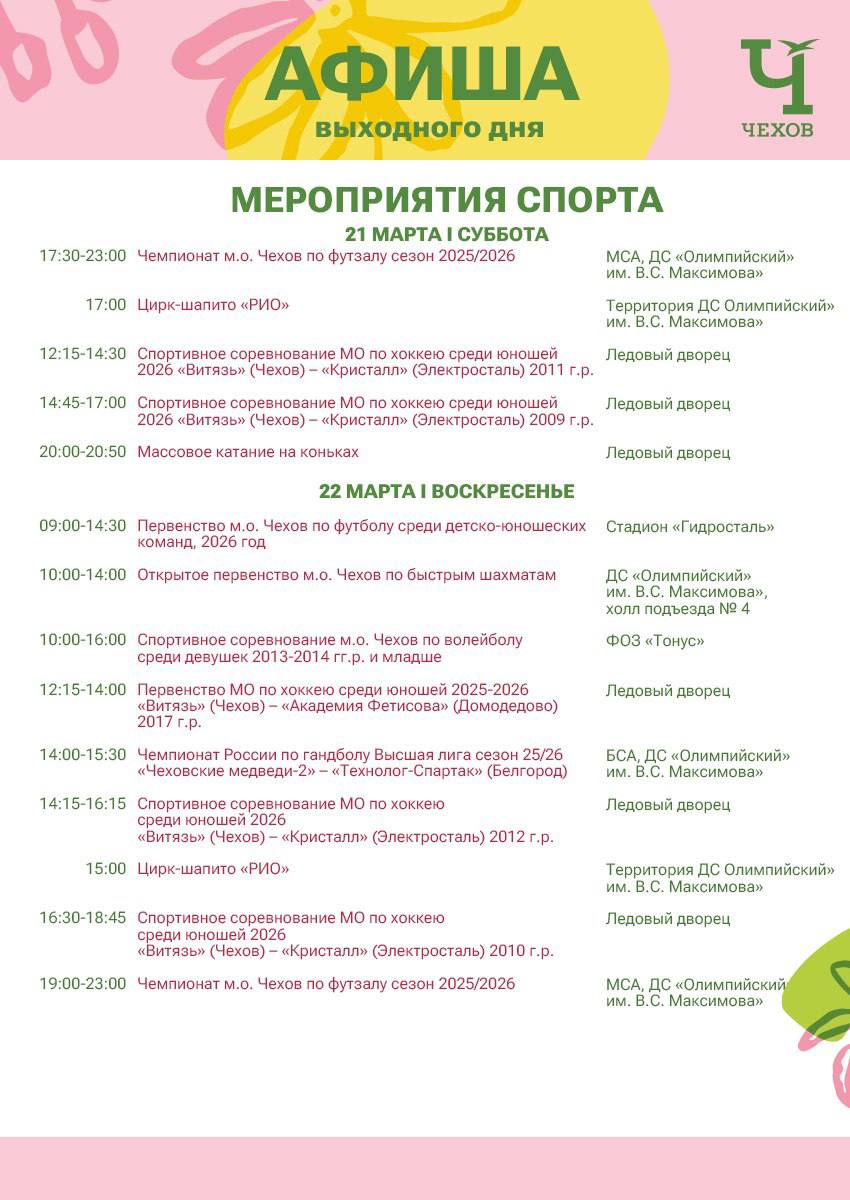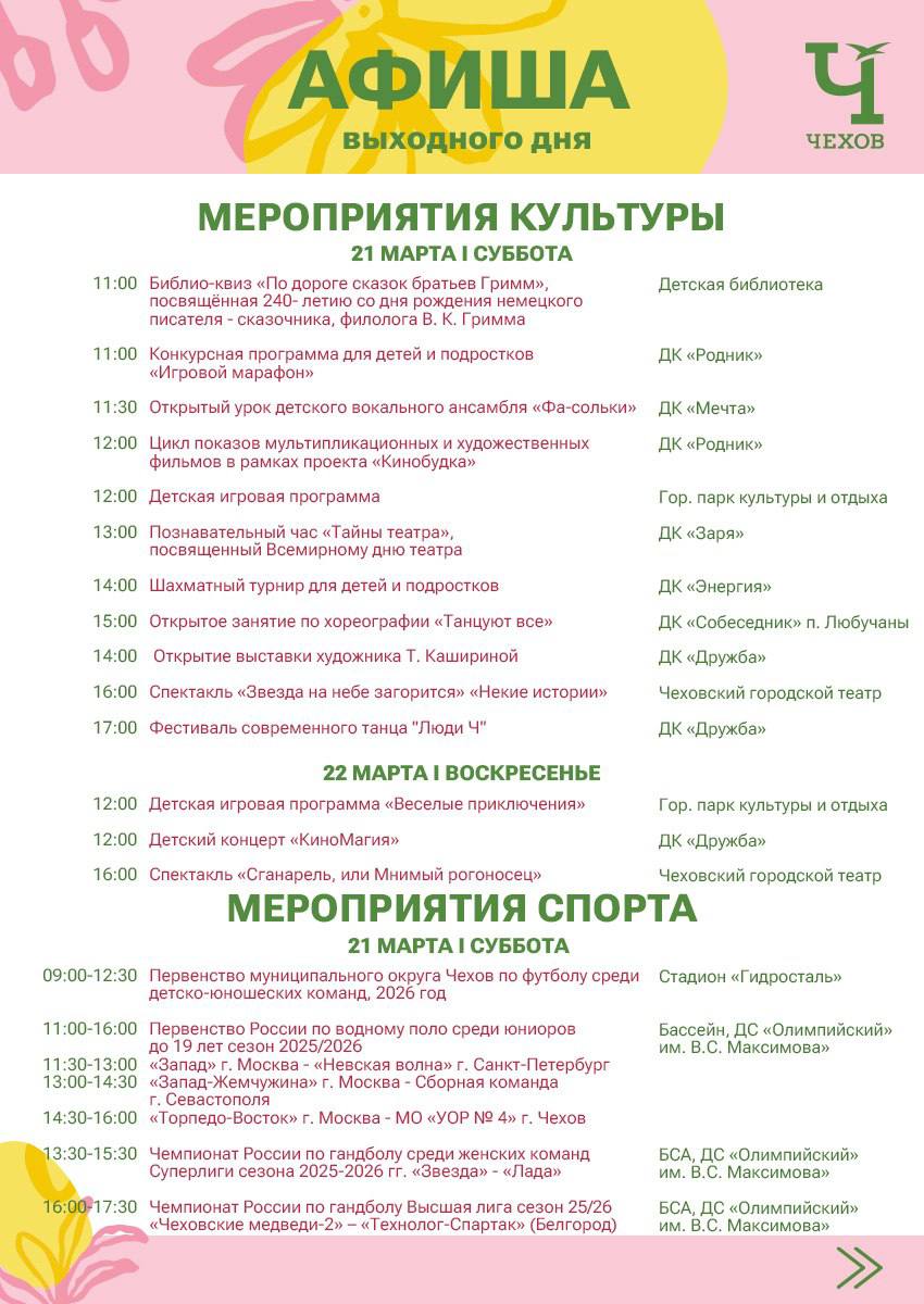 В эти выходные наши культурные и спортивные учреждения подготовили для вас мероприятия, которые пройдут на различных площадках округа.