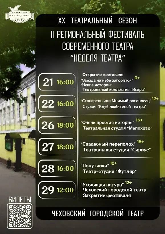 С 21 по 29 марта на сцене Чеховского городского театра можно будет увидеть шесть постановок в исполнении творческих коллективов муниципалитета. Программа фестиваля составлена с учётом разных возрастных групп и обещает, как детские, так и взрослые спектакли.