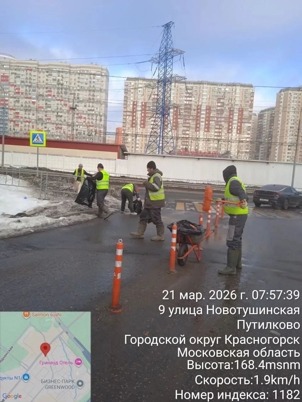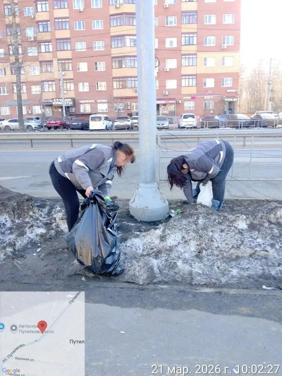 #ПрямоСейчас субботник проходит в Путилково: городские службы и представители администрации наводят порядок - убирают мусор, очищают газоны и подметают пешеходные зоны.