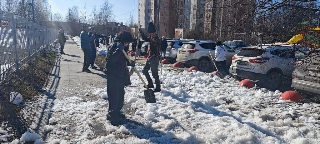 #ПрямоСейчас в Нахабино на улице Молодёжной проходит субботник. Сотрудники городских служб убирают мусор вдоль дорог, вывозят последний снег, очищают газоны и приводят в порядок тротуары.
