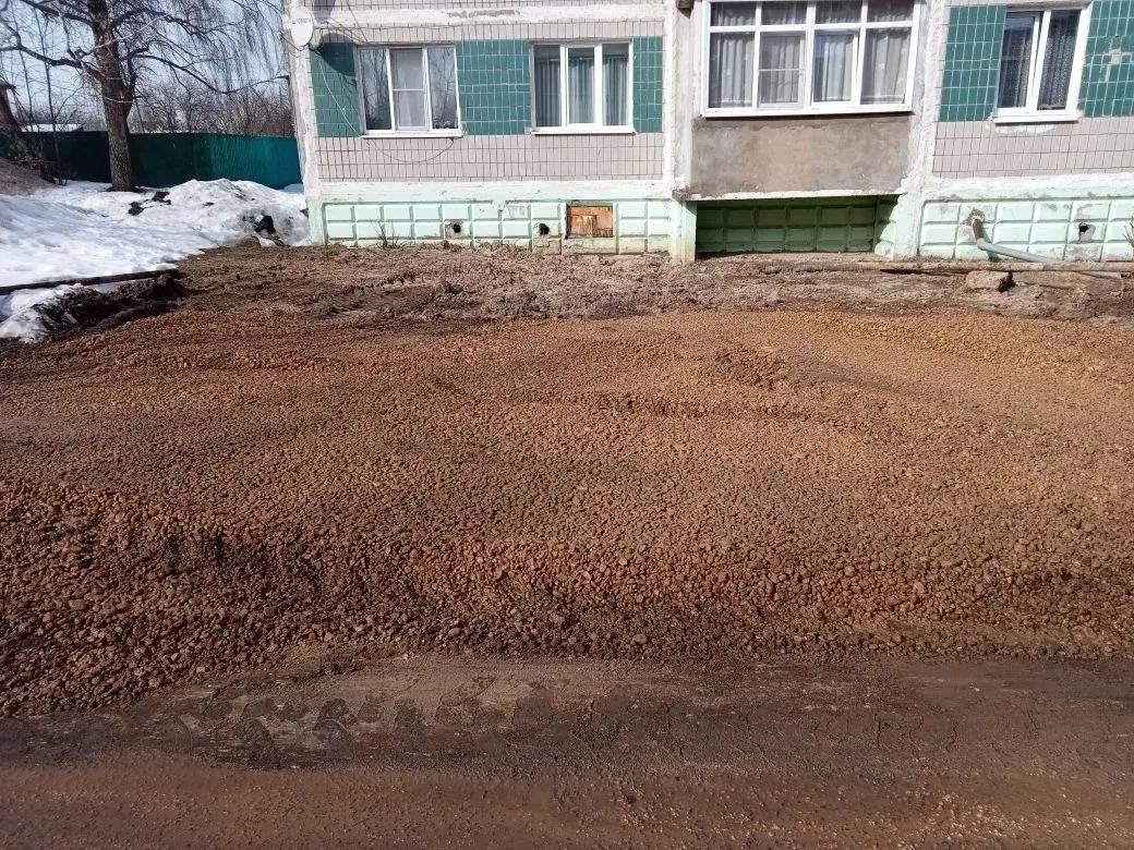 После проведения земляных работ засыпали ямы, добавили гравий, уплотнили покрытие — территорию привели в порядок.