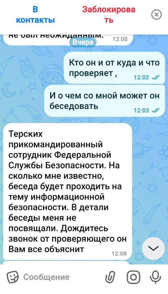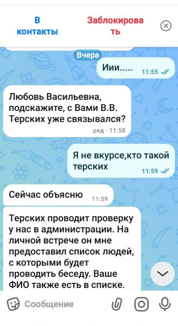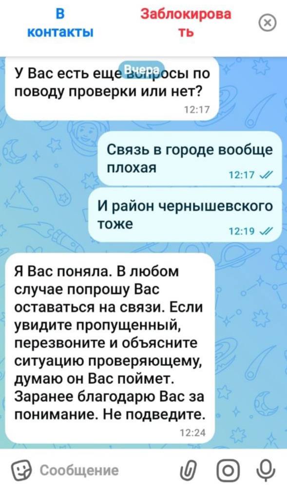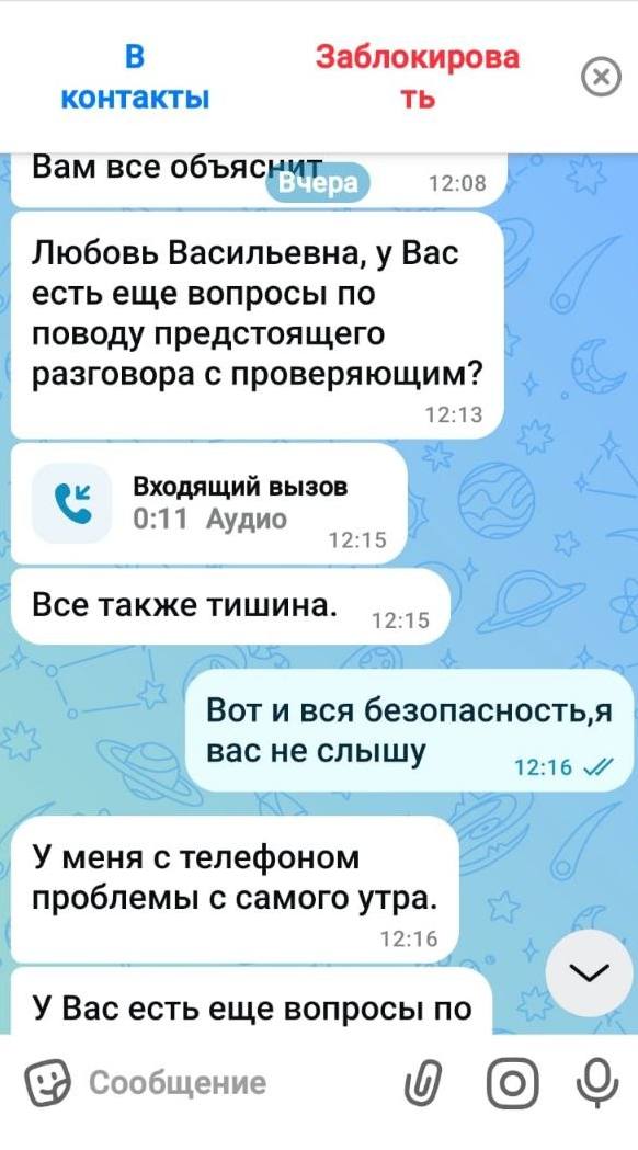 На этот раз мошенники действуют от имени администрации округа. Они пишут пожилым людям в мессенджерах. Сообщают, что сотрудник ФСБ проводит проверку, а адресат значится в списке для беседы. Затем просят ждать звонка и оставаться на связи.