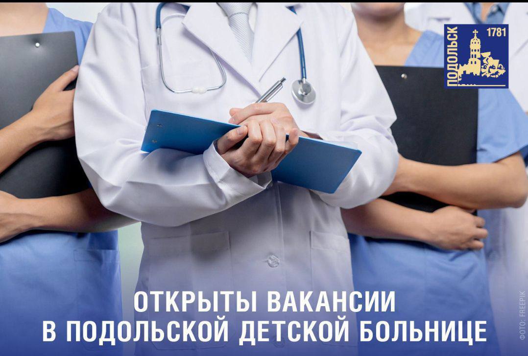 По вопросам трудоустройства обращайтесь в отдел кадров Подольской детской больницы по адресу: ул. Ленинградская, 9, каб. 410.