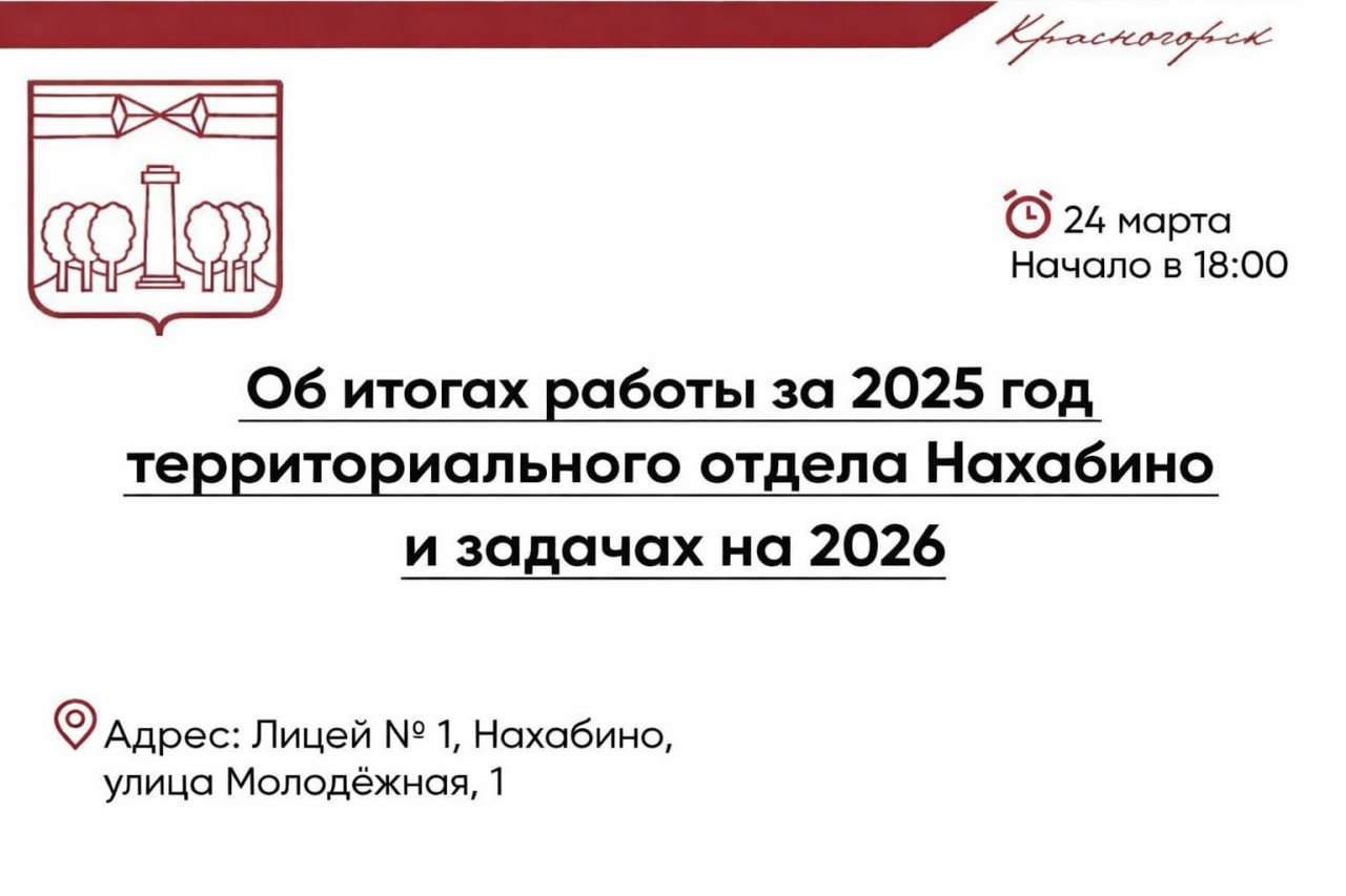 Уже завтра, 24 марта, в 18:00 в Лицее №1 в Нахабино состоится отчёт об итогах работы отдела Нахабино в 2025 году и задачах на 2026 год.