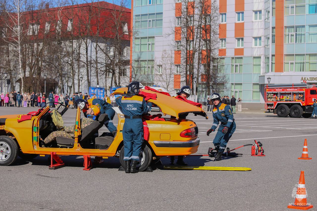 Практическая часть прошла на строевом плацу. Курсанты командно-инженерного факультета и студенты-спасатели продемонстрировали навыки аварийно-спасательных работ — в том числе извлечение пострадавшего из автомобиля при ДТП. Работу в экстремальных условиях показали специалисты Центра спасательных операций особого риска «Лидер» и отряда «Центроспас». Мероприятие украсили выступления роты почётного караула и роты барабанщиков Академии.