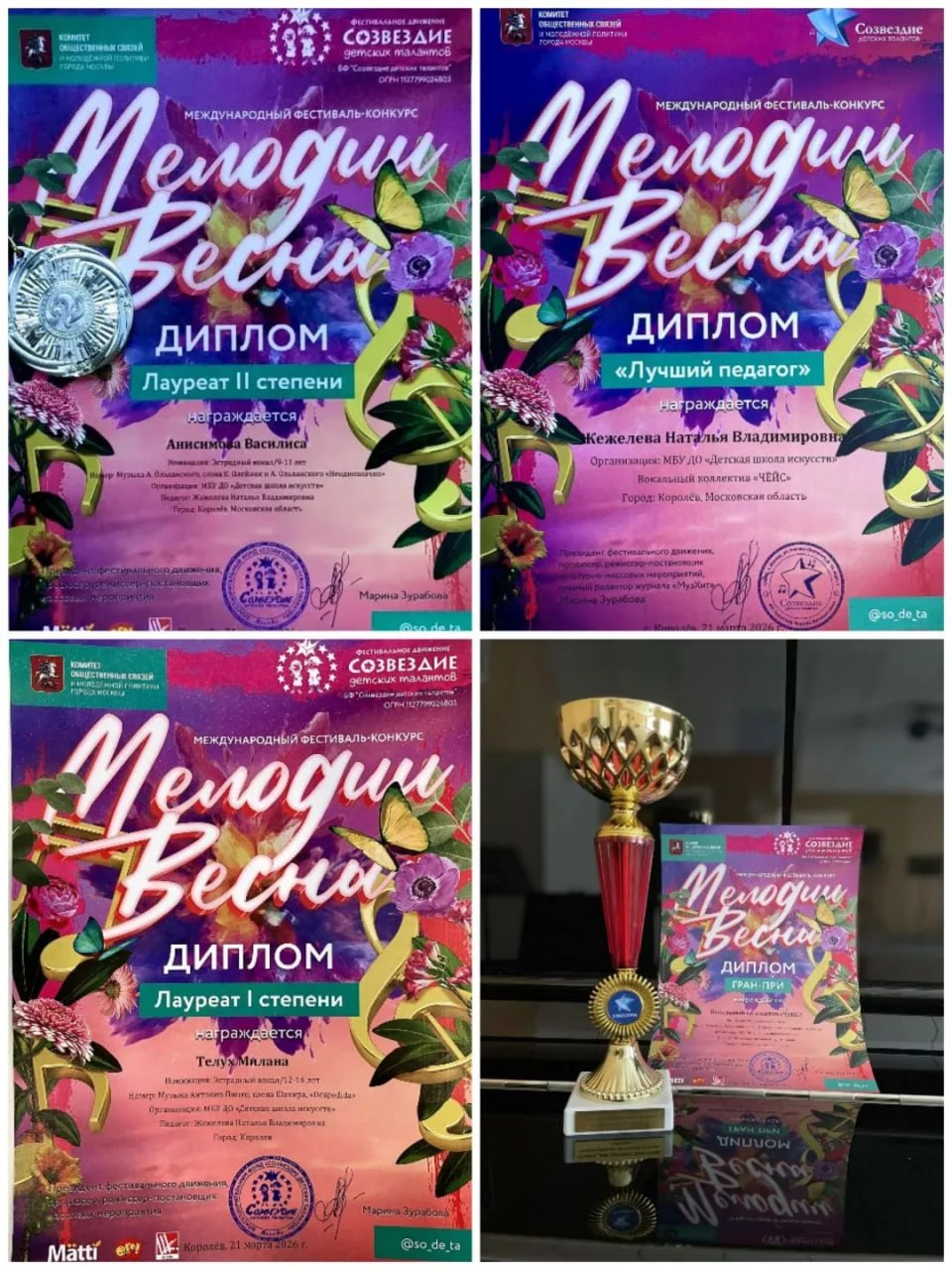 В минувшие выходные на сцене Центрального дворца культуры им. М. И. Калинина в рамках движения «Созвездие детских талантов» прошёл международный многожанровый фестиваль-конкурс «Мелодии весны».