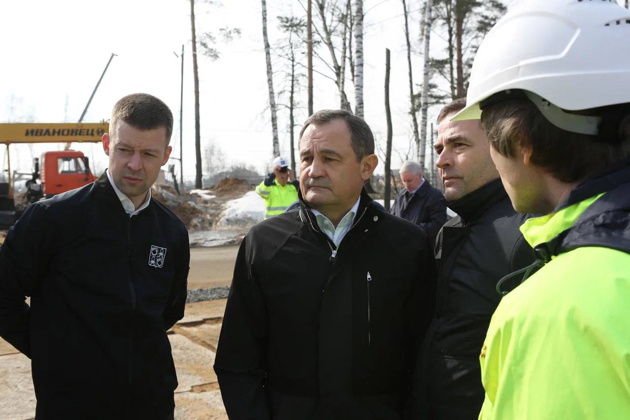 Вместе с председателем Московской областной Думы Игорем Юрьевичем Брынцаловым осмотрели ход строительства путепровода в деревне Чёрное.