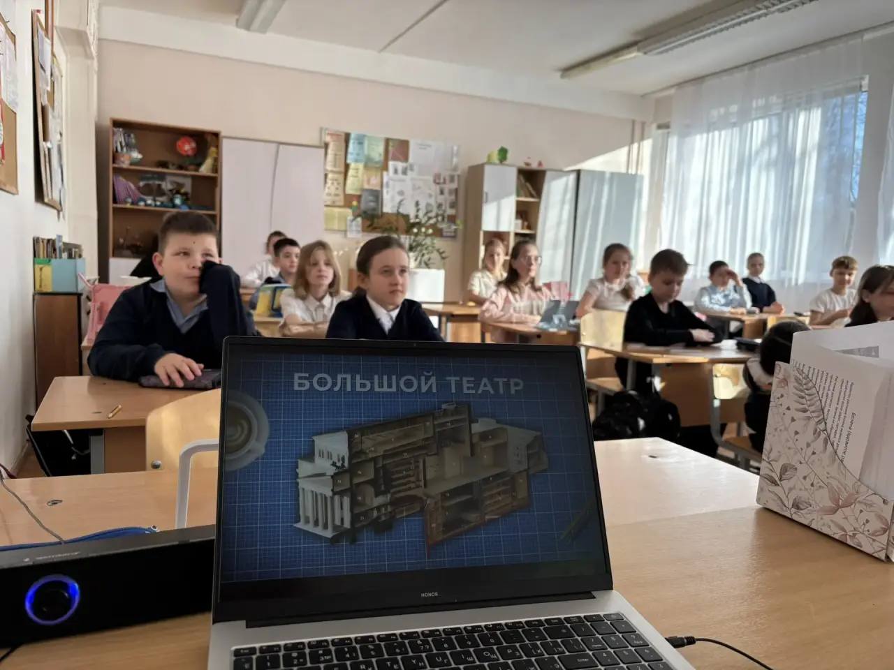 Также школьники познакомились с огромной командой, работающей над спектаклем: от режиссера и дирижера до бутафоров, гримеров и капельдинеров.
