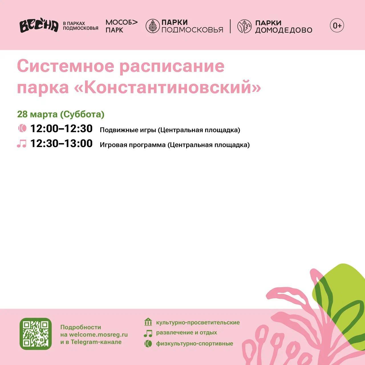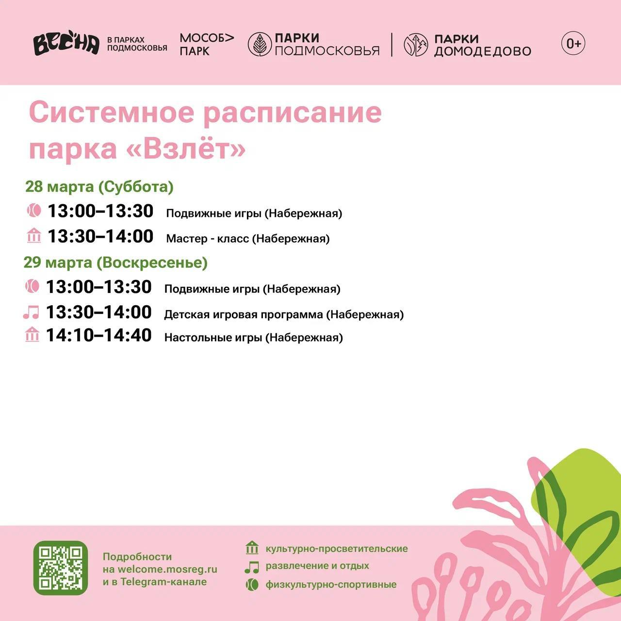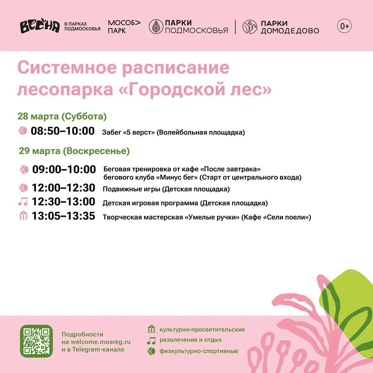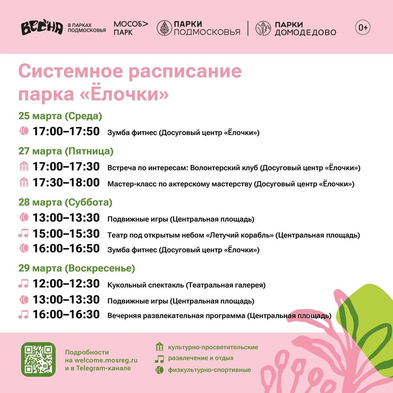 Солнышко светит, птички поют, а мы делимся с вами системным расписанием парков Домодедово