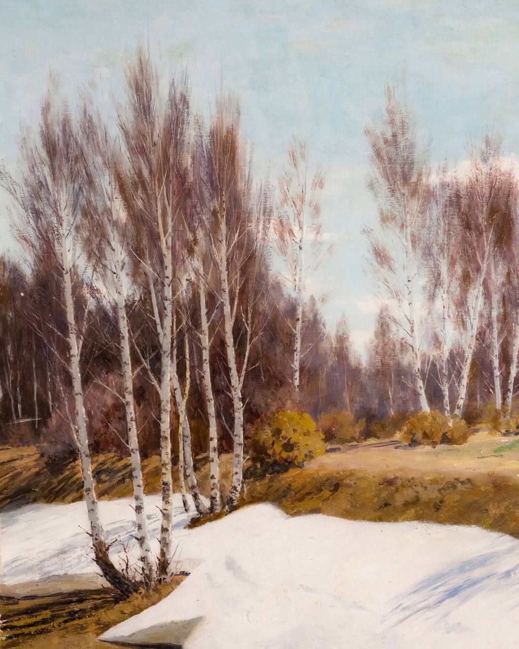 Изображение: П.И. Серёгин «Весенний пейзаж. Мелихово. Опушка леса», фрагмент. 1897 г.