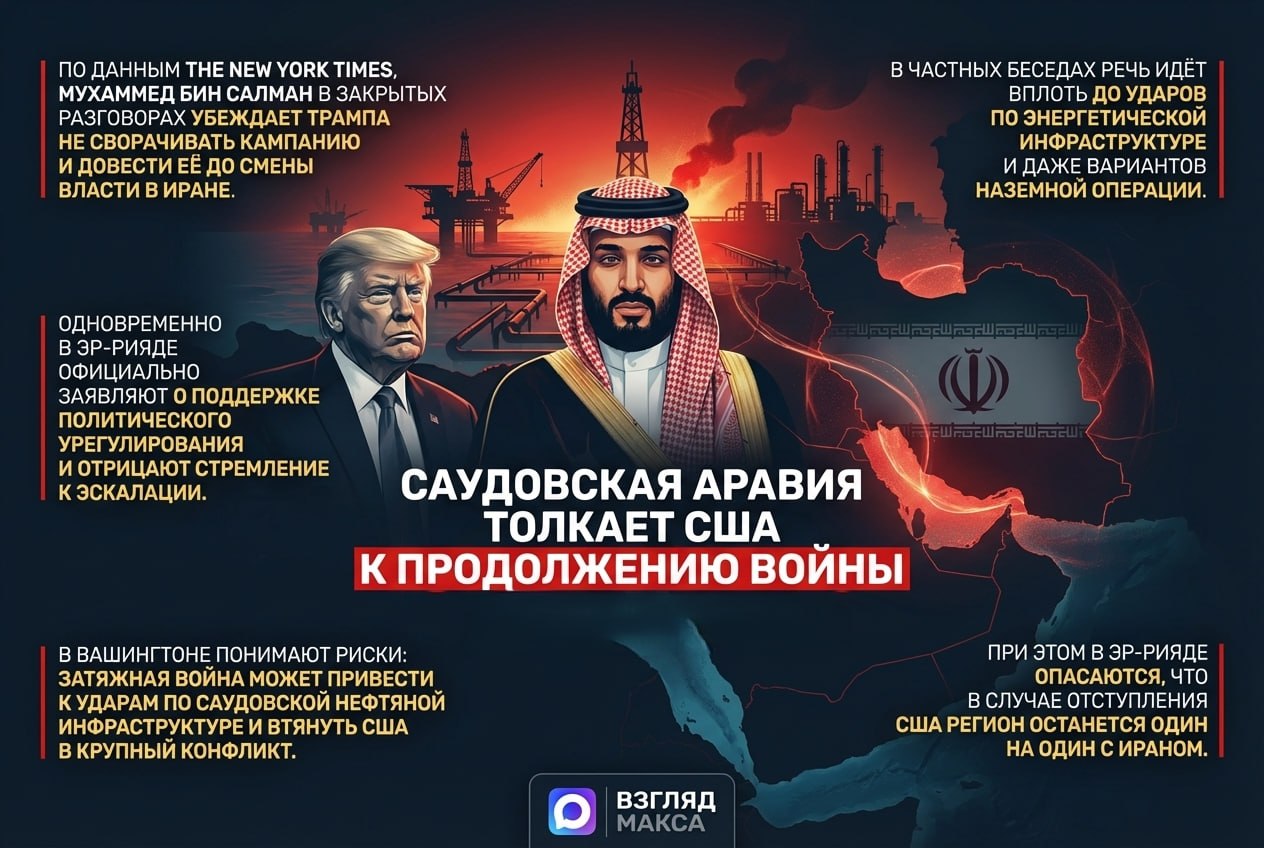 При этом сама The New York Times подчёркивает: в Вашингтоне и Эр-Рияде понимают, что затяжная война несёт для Саудовской Аравии колоссальные риски. Если конфликт продолжится, Иран может всё болезненнее бить по саудовской нефтяной инфраструктуре, а США — увязнуть в новой большой войне. Газета отдельно пишет, что именно это беспокоит многих высокопоставленных чиновников по обе стороны.