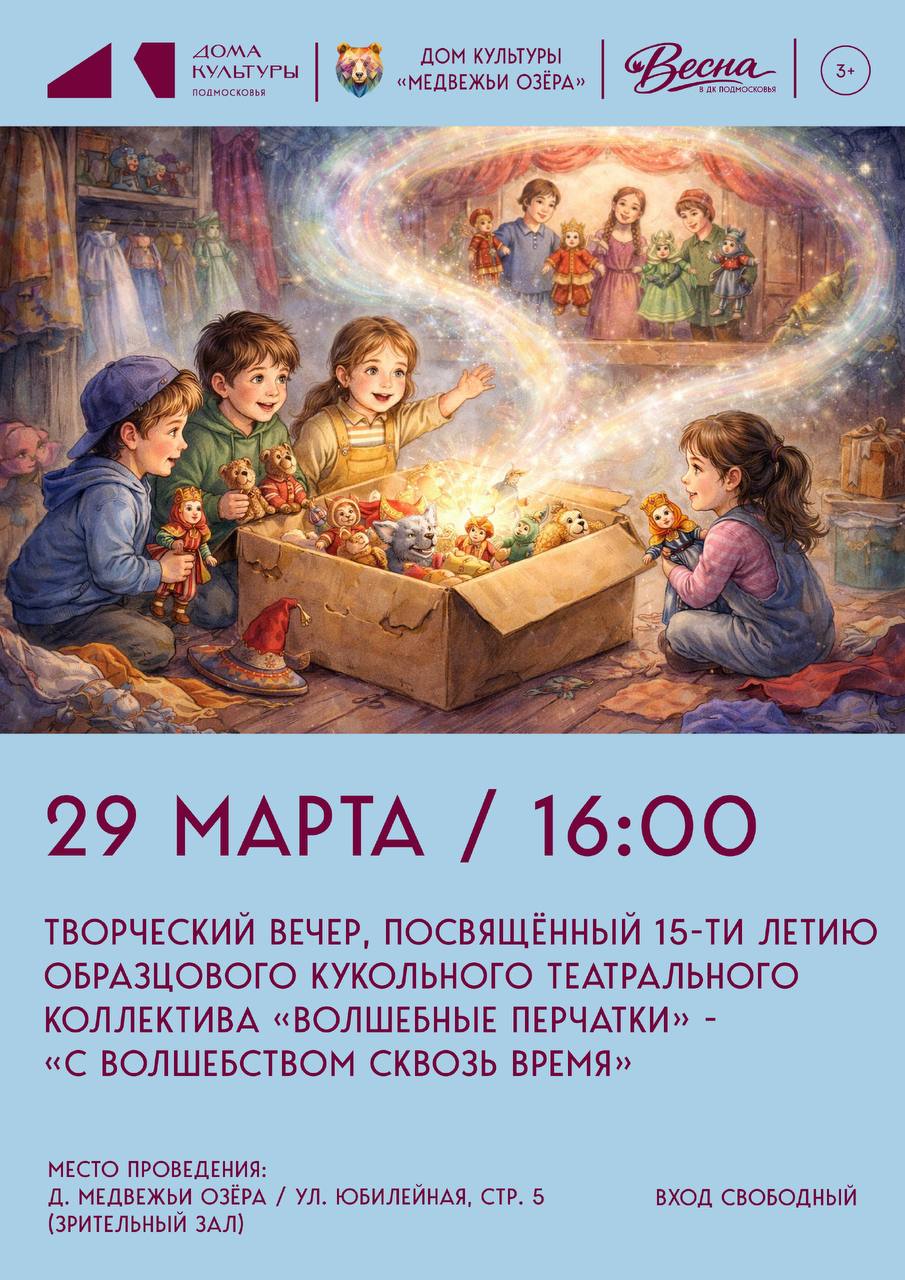 Дом культуры «Медвежьи Озёра» ждёт вас на творческом вечере, посвящённом 15-летнему юбилею кукольного театрального коллектива «Волшебные перчатки»