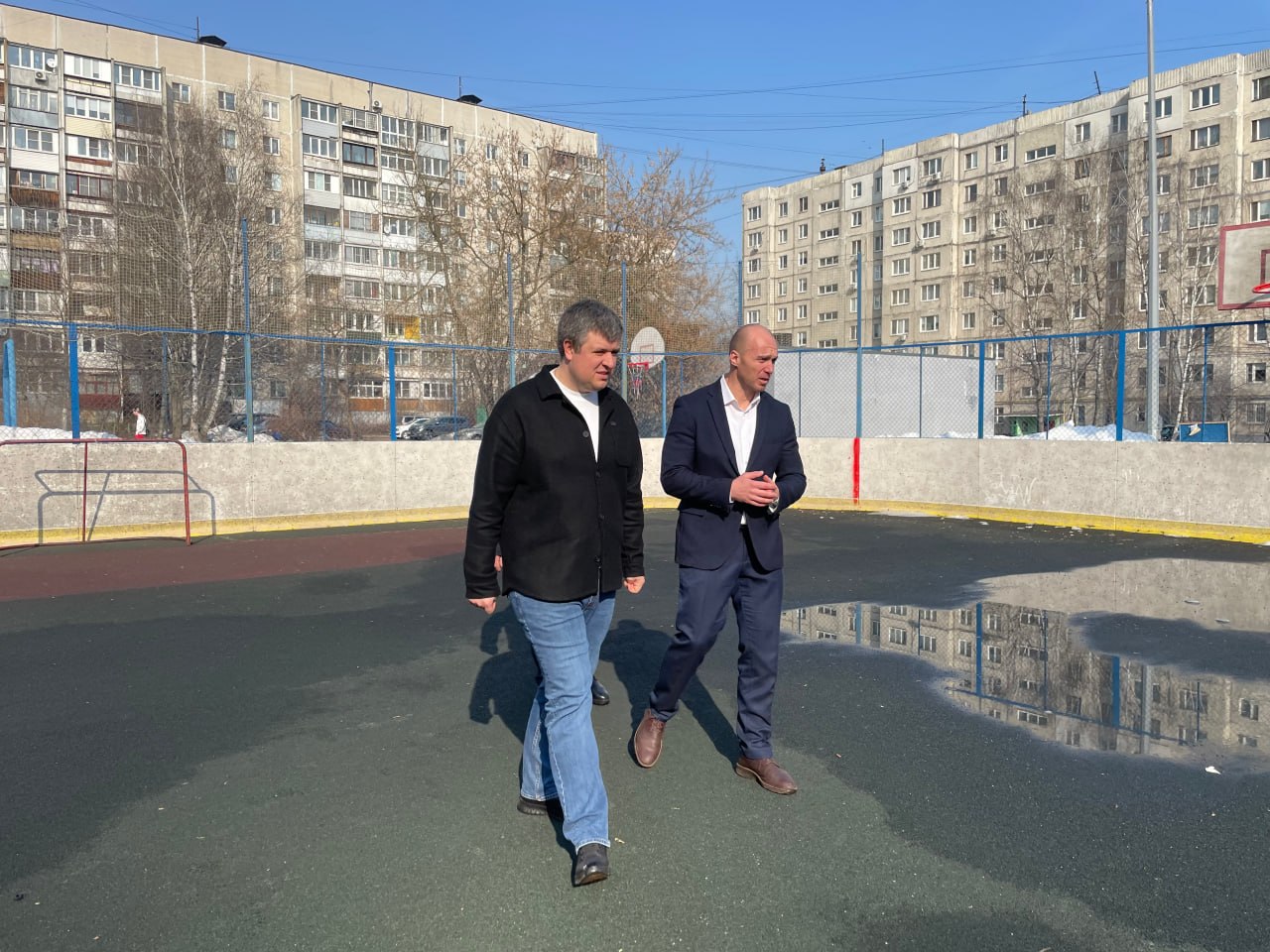 Депутат Государственной Думы Александр Толмачёв и депутат Совета депутатов Балашихи Антон Орешков проверили исполнение наказов жителей в рамках Народной программы Единой России. Они посетили спортивную площадку на улице Солнечной в микрорайоне Балашиха-2.