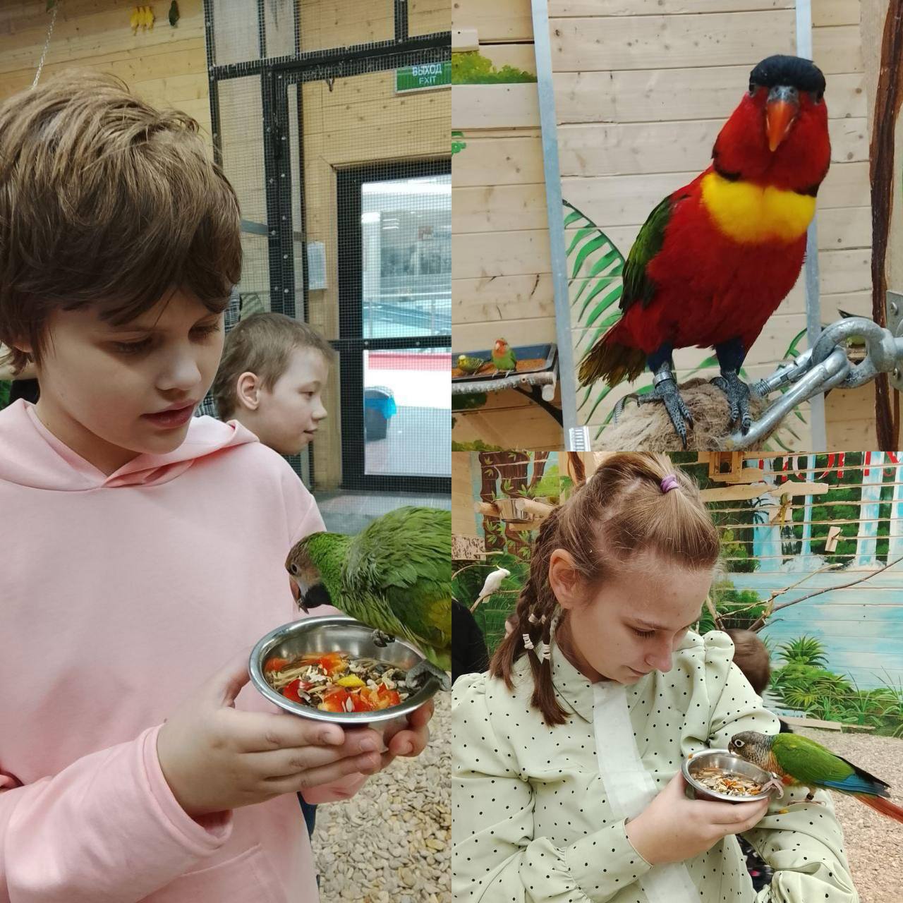Дети познакомились с разными видами попугаев, узнали об их повадках, особенностях питания и содержания. А главное — смогли не только наблюдать за птицами, но и взаимодействовать с ними в формате контактного зоопарка.