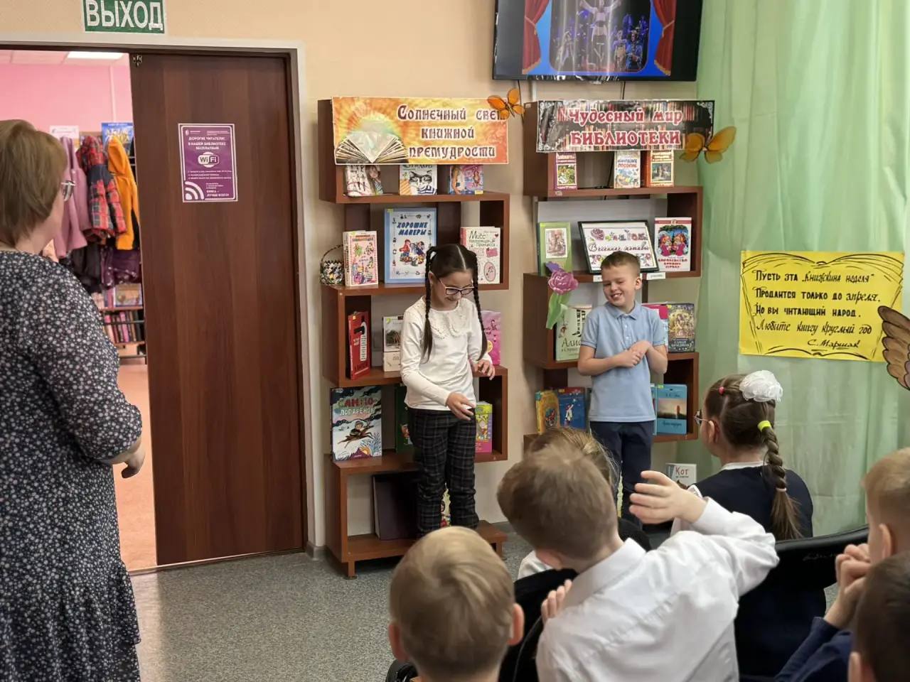А еще библиотека превратилась в настоящую театральную сцену! Детям рассказали, как книга становится спектаклем. Ребята с воодушевлением попробовали себя в роли актеров пантомимы. Без единого слова, только пластикой и эмоциями, они изобразили героев любимых стихов! Было очень весело и интересно.