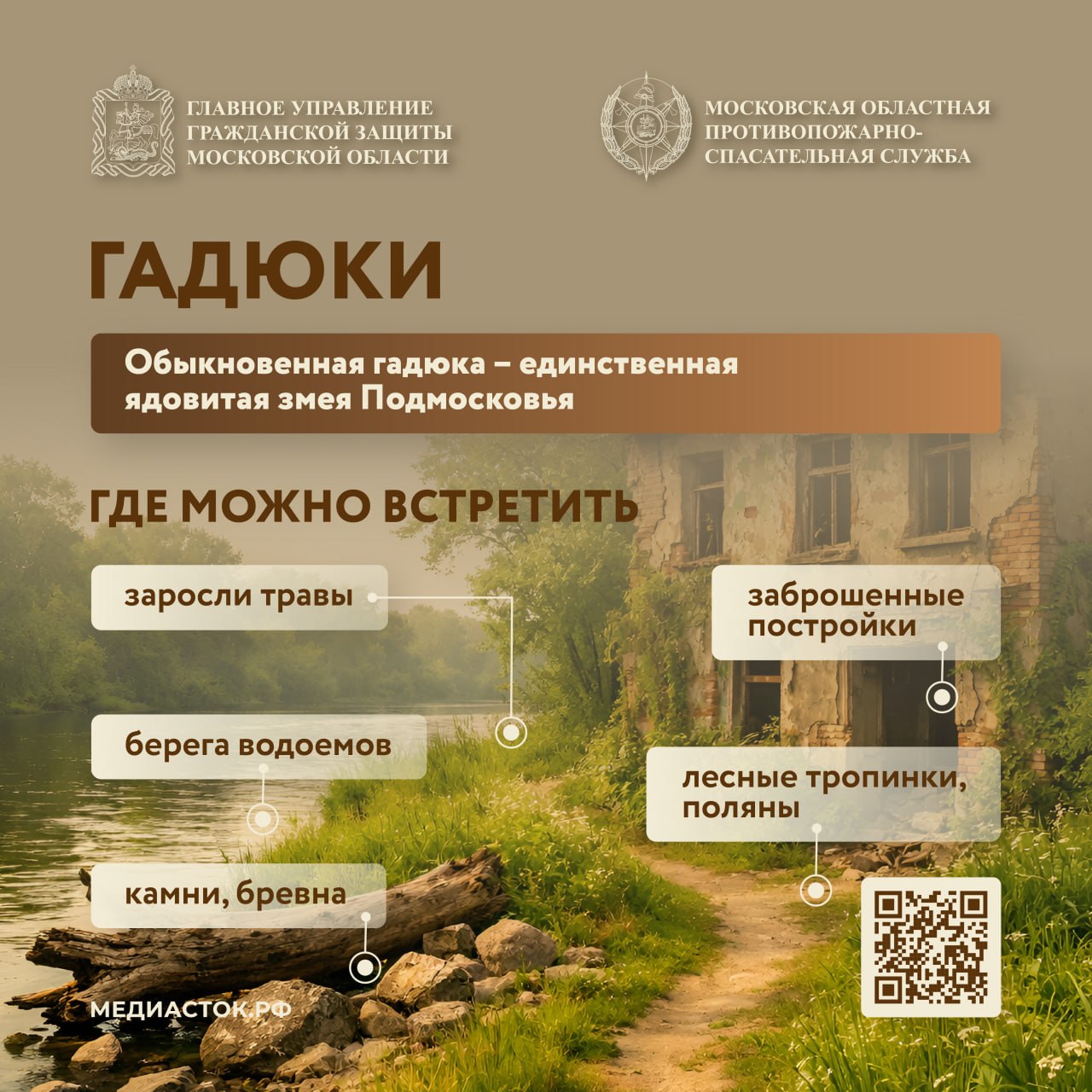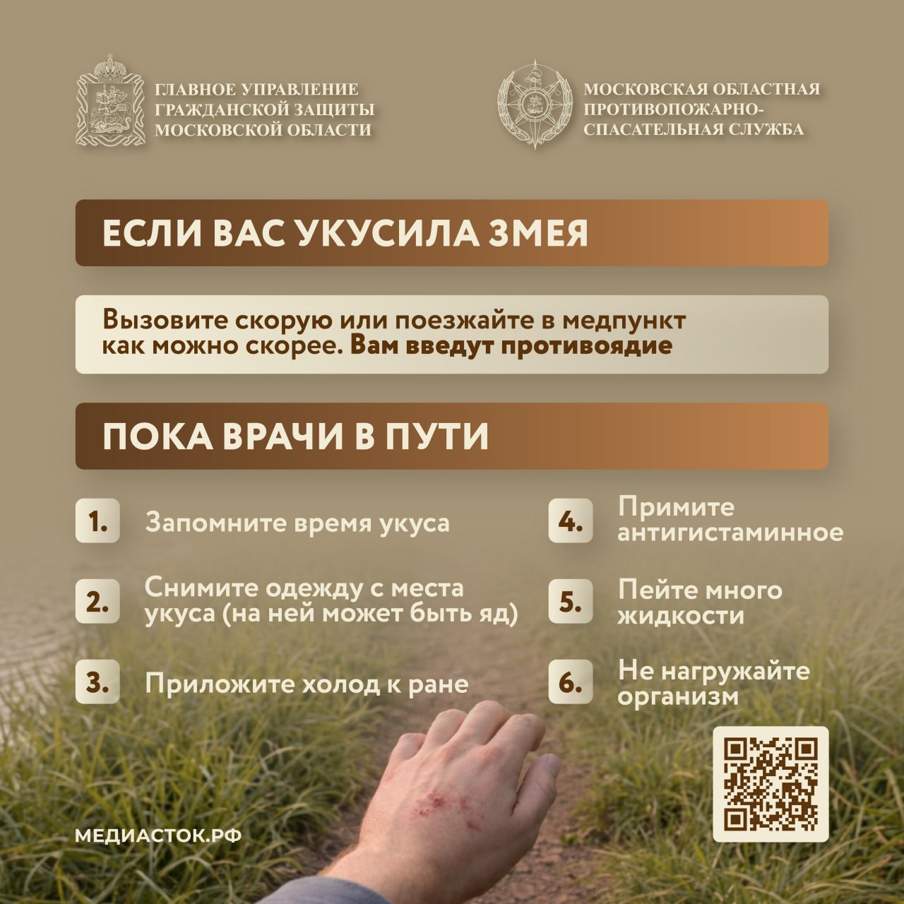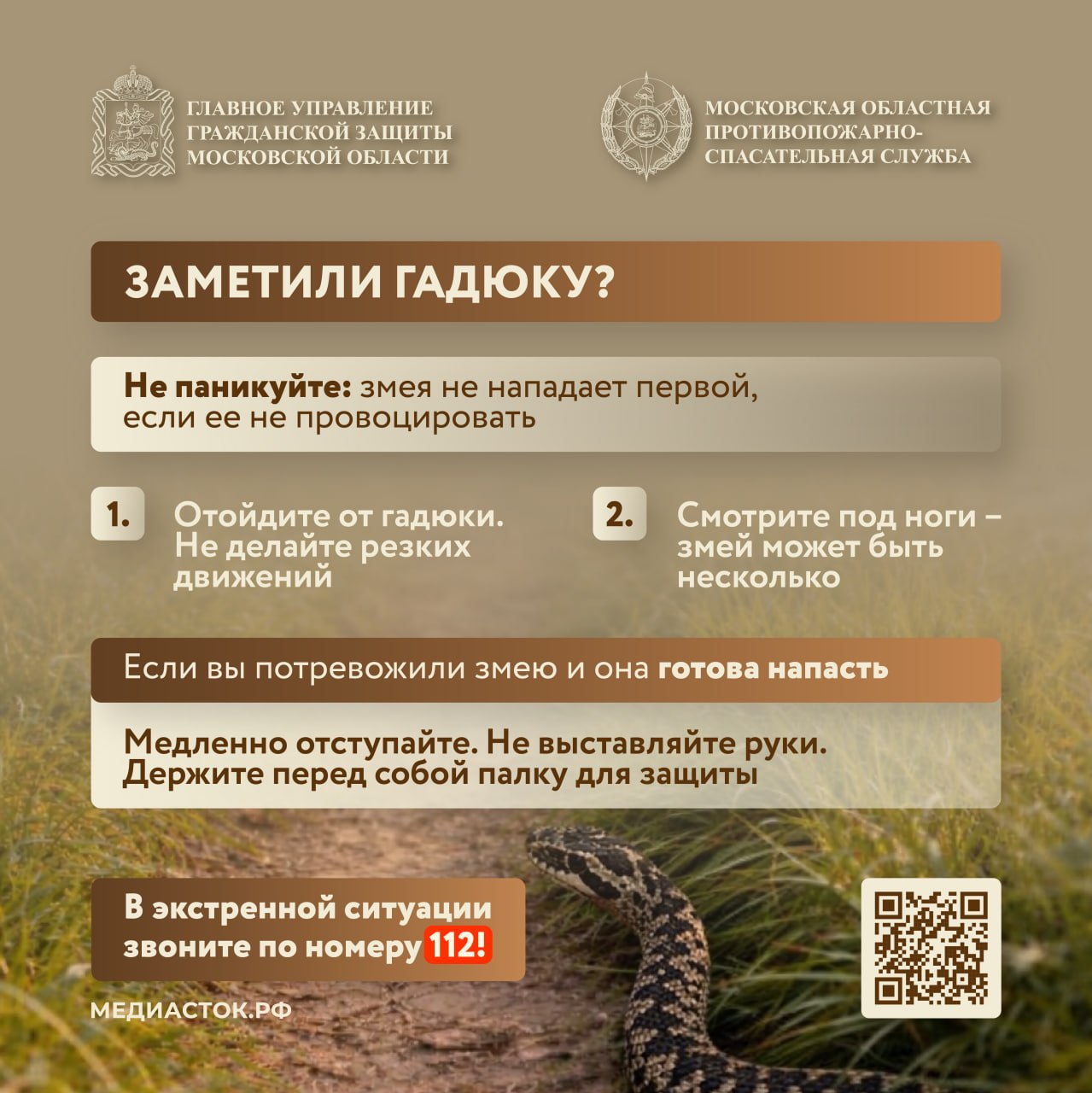 Чем опасны пресмыкающиеся, где их можно обнаружить и что делать при укусе змеи – читайте в карточках.