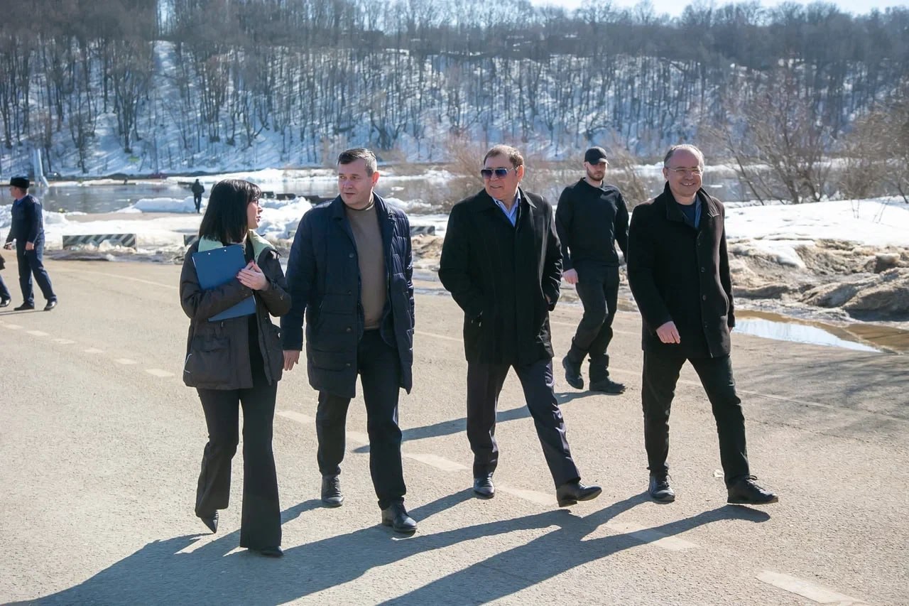 Глава Городского округа Коломна Александр Гречищев вместе с депутатом Мособлдумы Игорем Исаевым побывали у понтонного моста в Озёрах, где скоро - как только на Оке полностью закончится ледоход – на время паводка организуют переправу. Как и в прежние годы, теплоход будет доставлять пассажиров с левого берега на правый и обратно по расписанию.