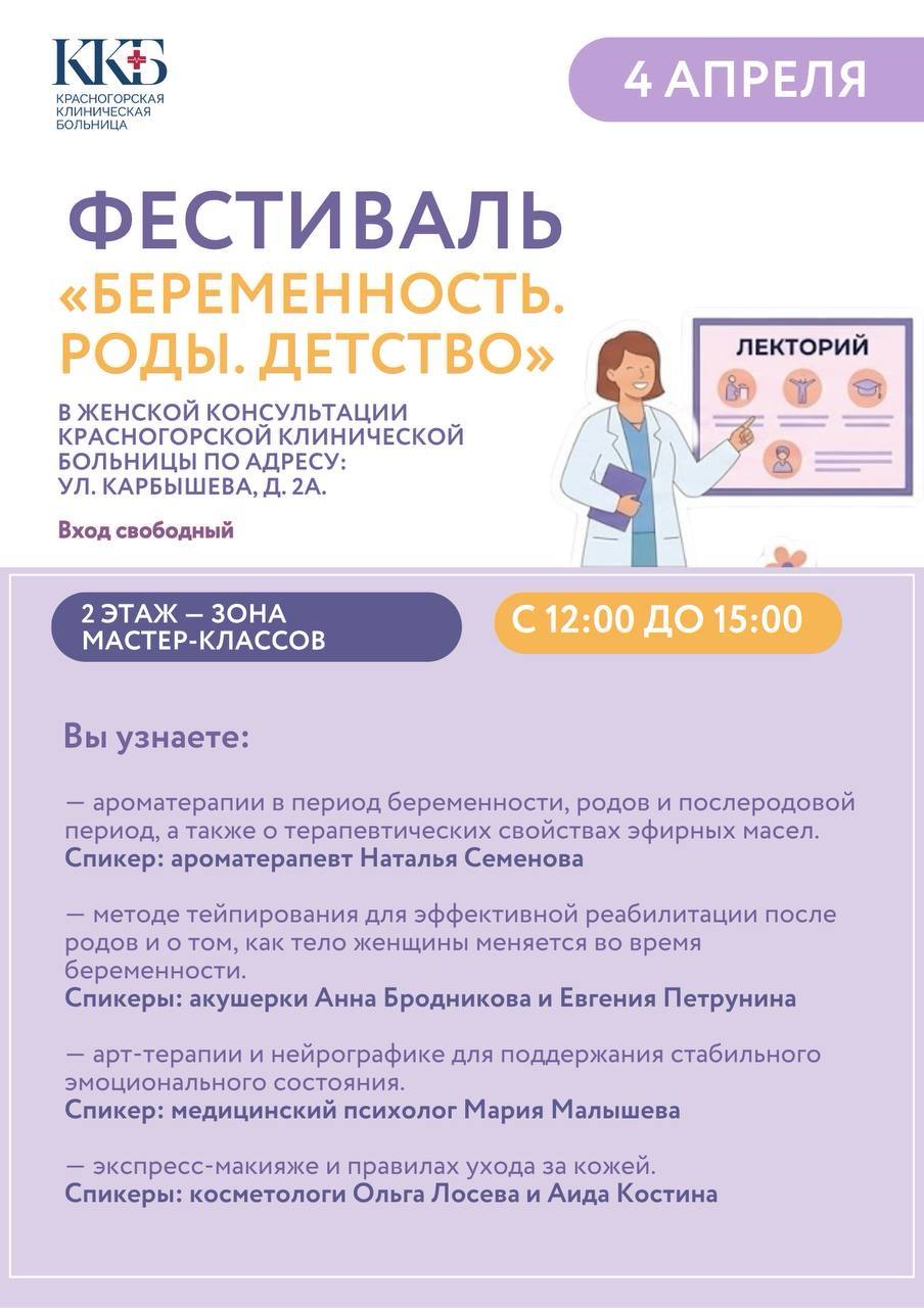 Фестиваль пройдет в женской консультации Красногорской клинической больницы. Начало в 10:30.Зарегистрироваться можно по ссылке.