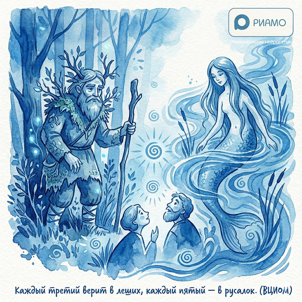 Каждый третий россиянин верит в леших, а каждый пятый — в русалок. Такие данные приводит исследование ВЦИОМ, сообщает ТАСС.