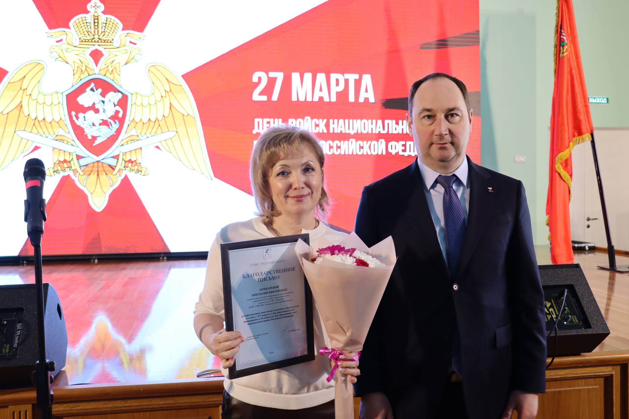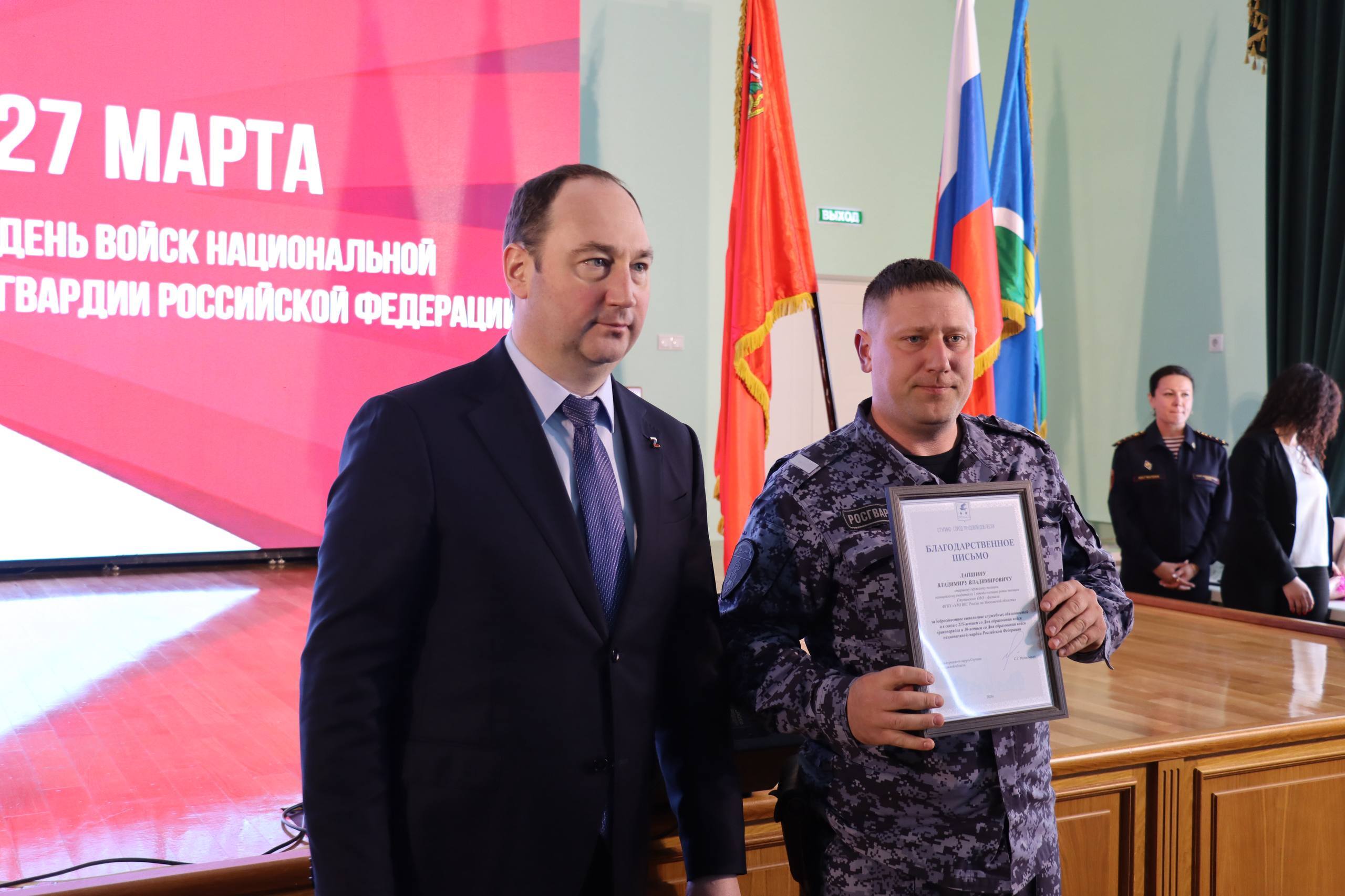 К поздравлению присоединились председатель местного Совета депутатов Александр Сухачёв и начальник Ступинского отдела вневедомственной охраны Андрей Вронский.