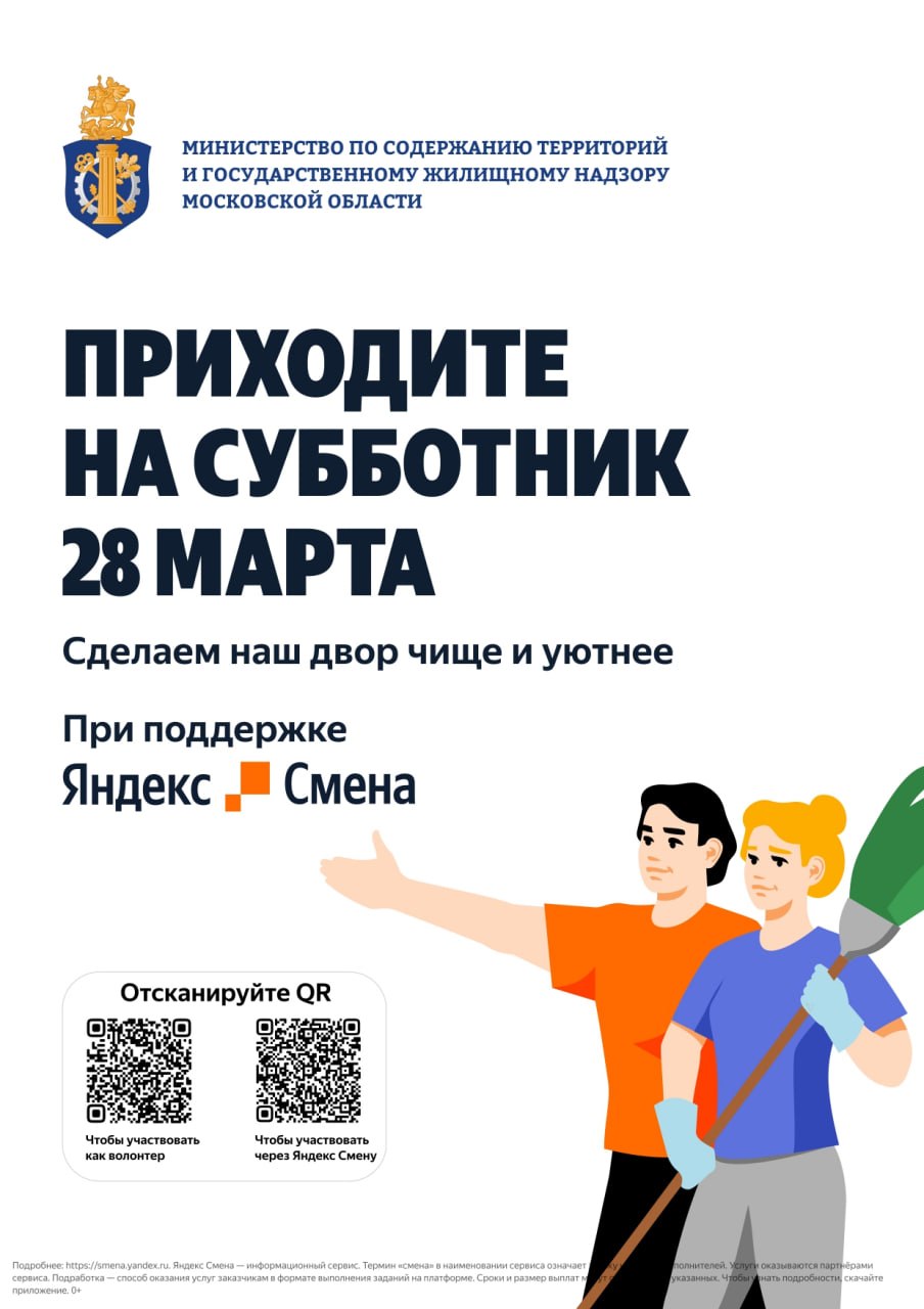Приглашаем жителей округа принять участие в субботнике, который состоится 28 марта. Присоединиться к экологической инициативе можно вместе с семьей и друзьями.